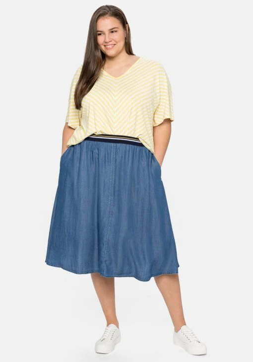 „Der Sheego Chiffonrock mit Alloverdruck ist ein elegantes und luftiges Kleidungsstück, das perfekt für warme Tage geeignet ist. Der Rock besticht durch seinen schönen Alloverdruck, der ihm eine frische, moderne Note verleiht.“