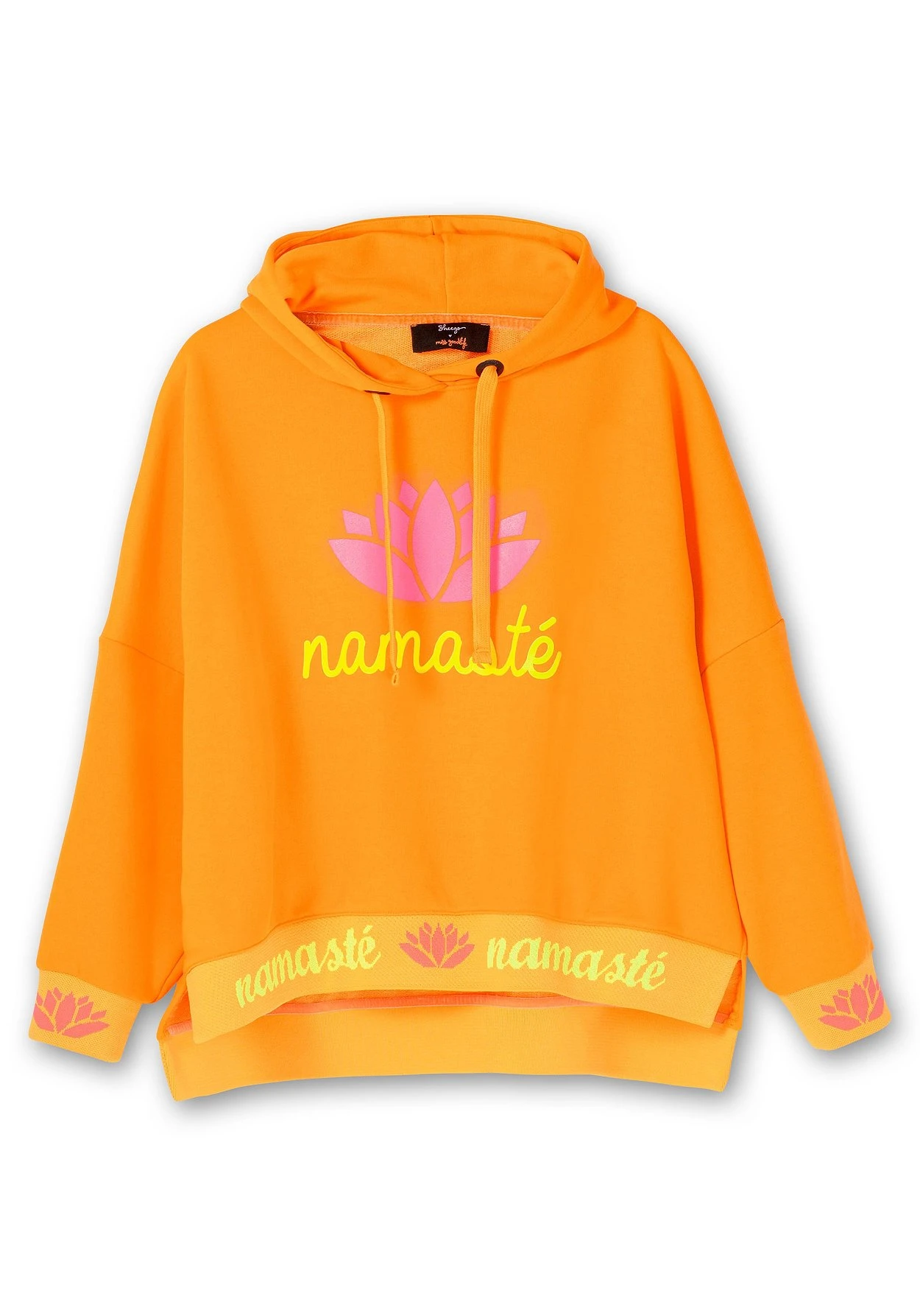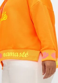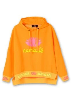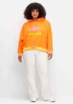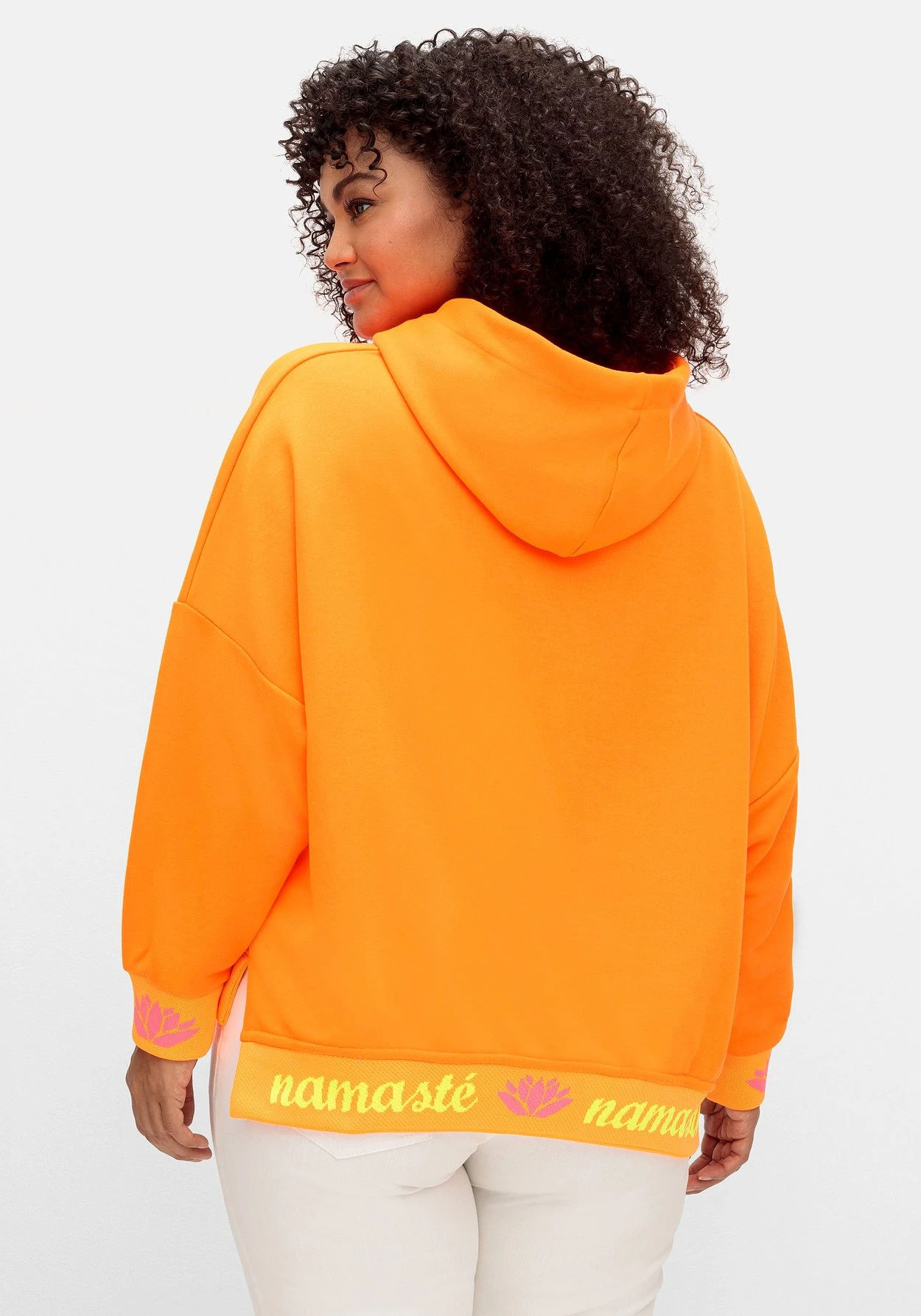 Sweatshirt mit Kapuze und Bindeband von sheego loves miss goodlife. Die weit überschnittenen Schultern und die verlängerte Rückenpartie unterstreichen den lässig-sportiven Look. Im Vorderteil fallen der Statementdruck sowie die dekorative Yogablüte ins Auge. Auch an den breiten Ärmel- und Saumbündchen finden sich Blüte und Print wieder. Für mehr Bequemlichkeit ist der Saumbund zusätzlich seitlich geschlitzt.