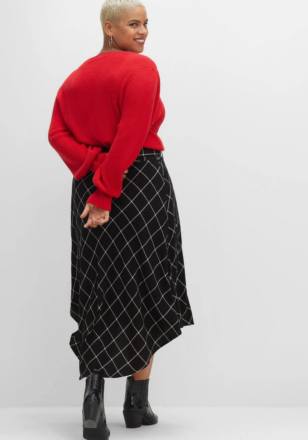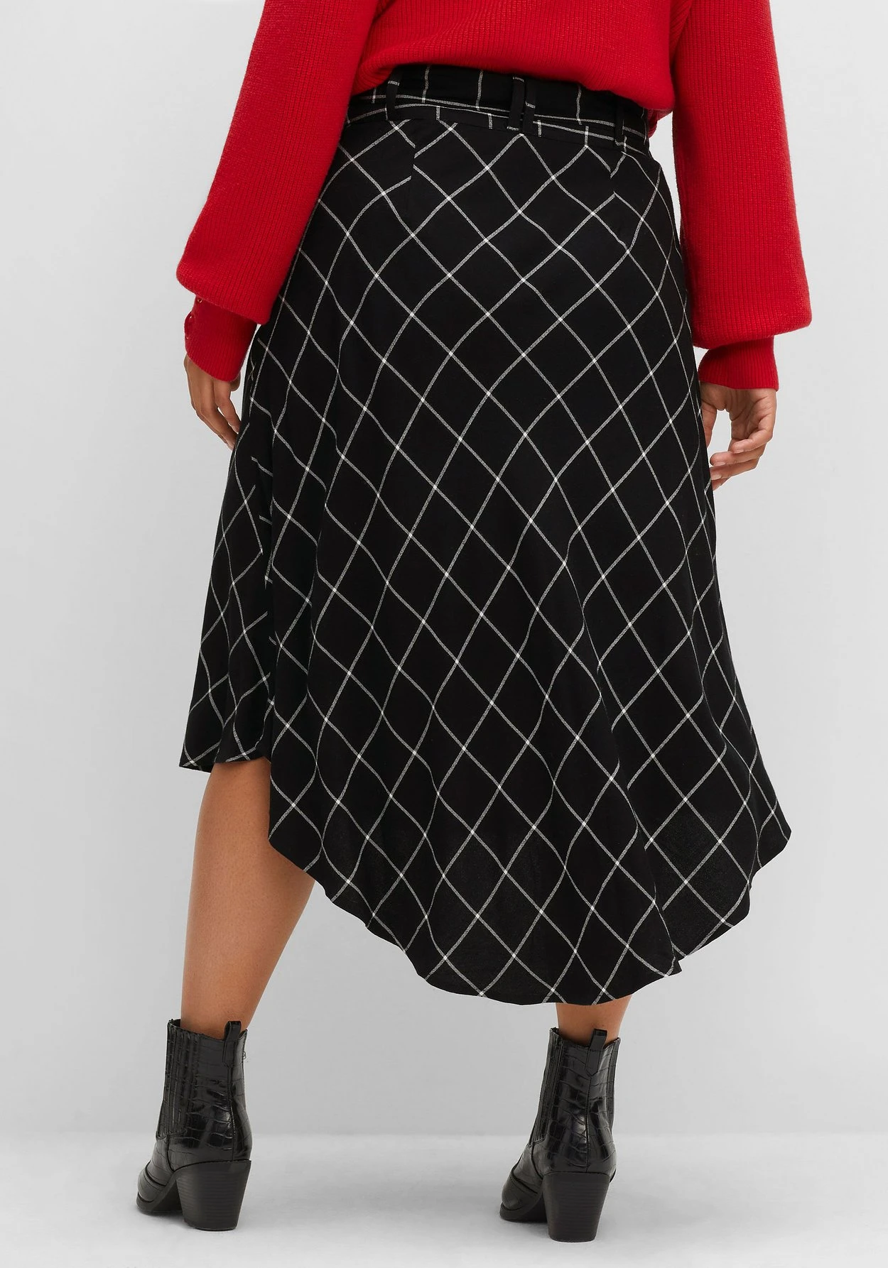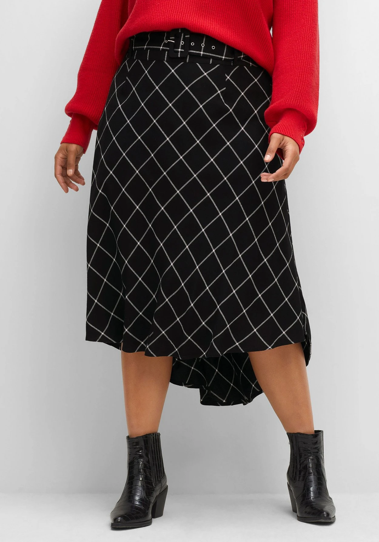 Rock im garngefärbten Karomuster von sheego by Joe Browns. Der raffinierte Vokuhila-Schnitt ist vorn kurz und hinten deutlich länger gearbeitet. Der Formbund mit Stoffgürtel und stoffbezogener Schnalle bildet das dekorative Stilelement und betont die Taille. Ein nahtfeiner Seitenzipper ergänzt den femininen Style.