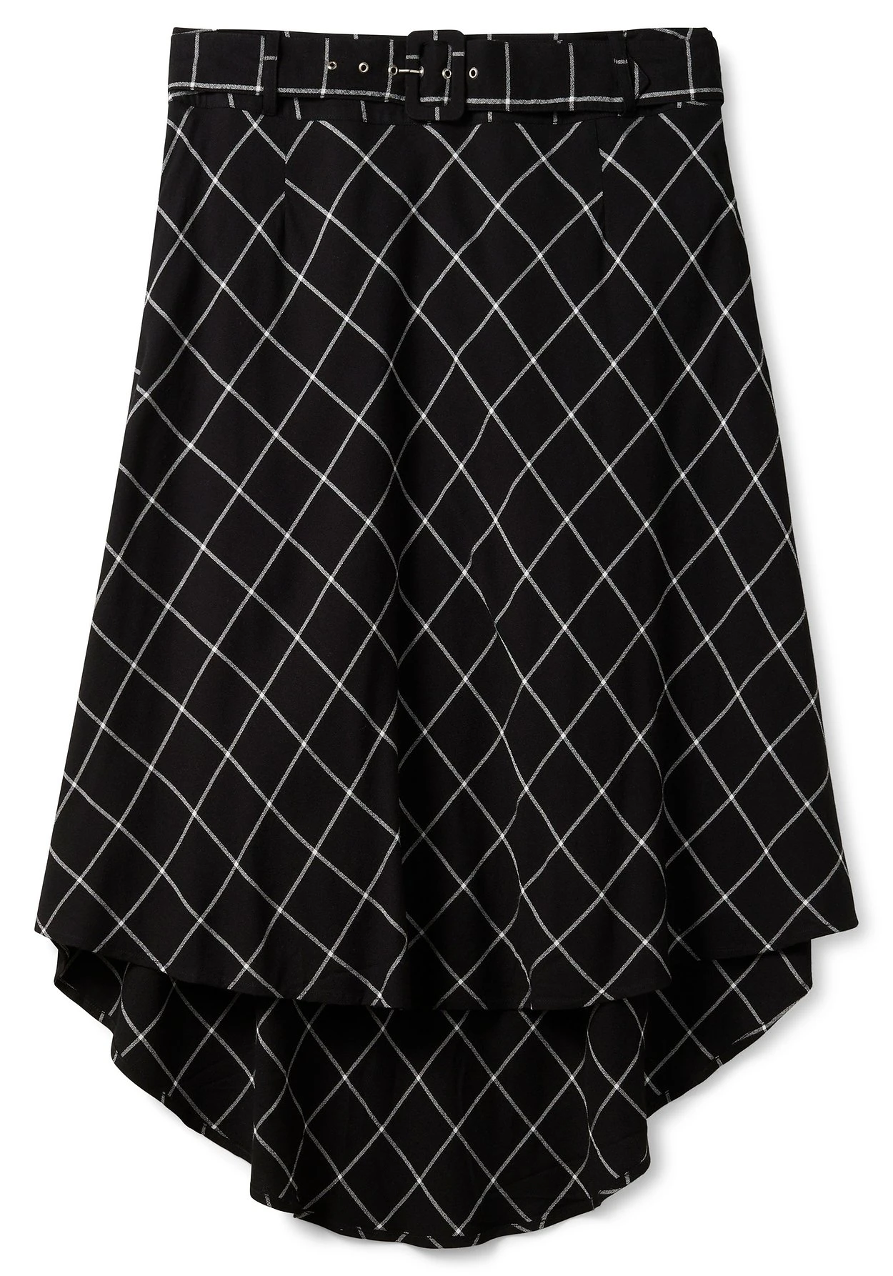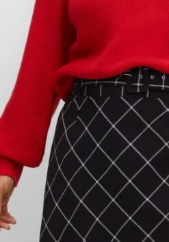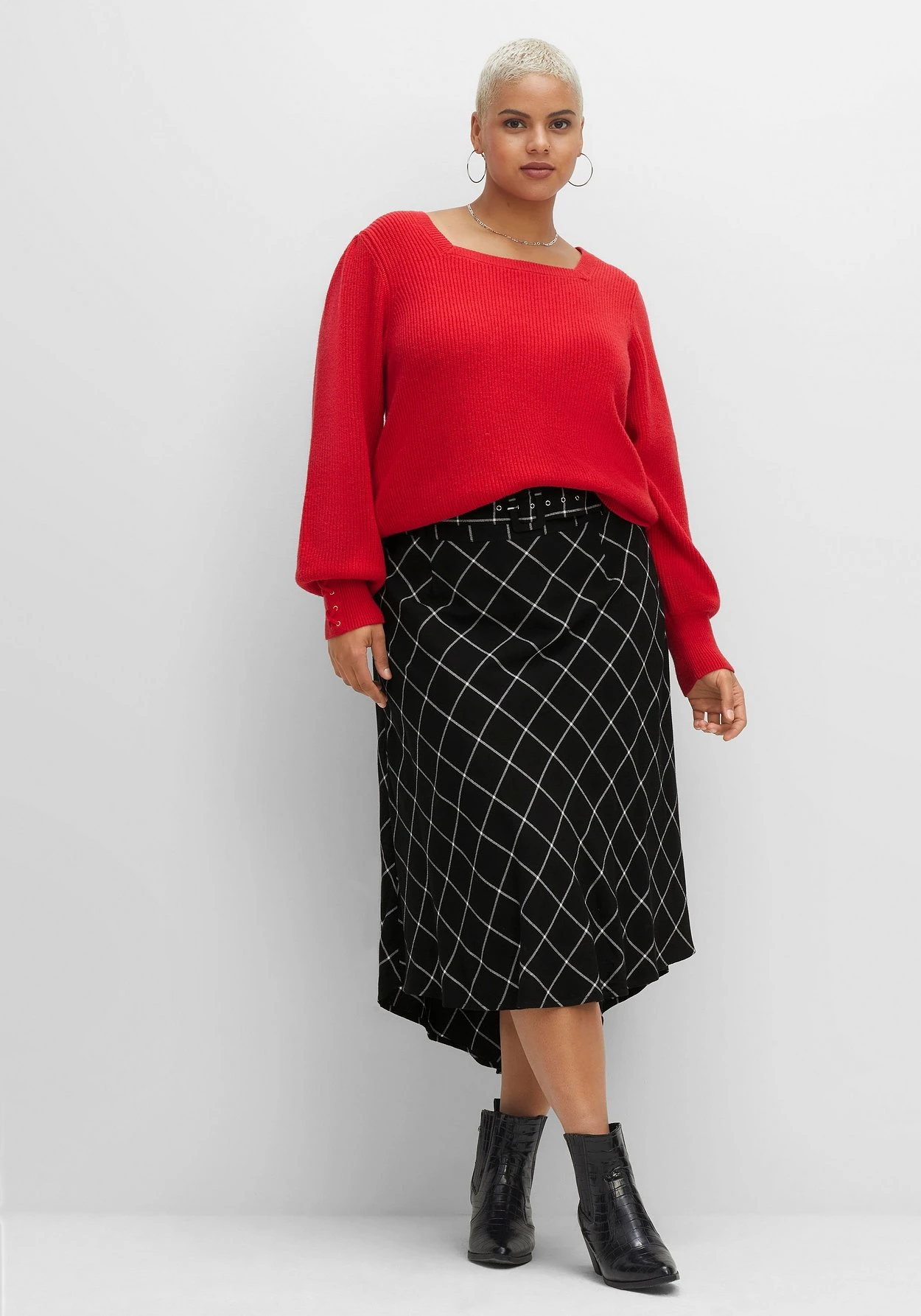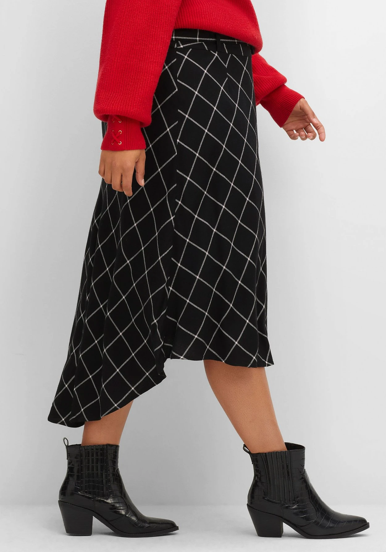 Rock im garngefärbten Karomuster von sheego by Joe Browns. Der raffinierte Vokuhila-Schnitt ist vorn kurz und hinten deutlich länger gearbeitet. Der Formbund mit Stoffgürtel und stoffbezogener Schnalle bildet das dekorative Stilelement und betont die Taille. Ein nahtfeiner Seitenzipper ergänzt den femininen Style.