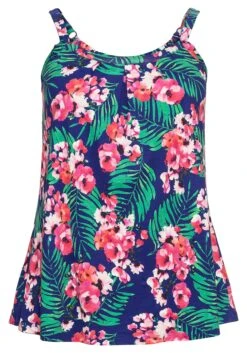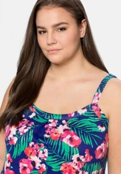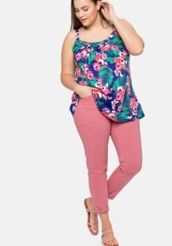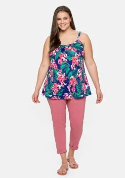 Longtop mit verstellbaren Spaghettiträgern von sheego by Joe Browns. Besonders dekorativ zeigt sich der farbenfrohe Blumendruck. die gelegten Falten und der feminine Rundhalsausschnitt ergänzen den sommerlichen Style.