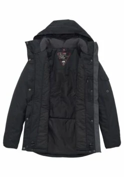 Atmungsaktiv, wind- und wasserdicht. Verschweißte Nähte. Hoher Kragen mit Kapuze. Verdeckter Reißverschluss. Abriebfeste Qualität mit warmer Wattierung.