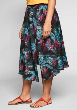 Rock in Maxilänge von sheego by Joe Browns. Das farbenfrohe, versetzt angelegte Muster macht aus jedem Teil ein Unikat. Der leicht ausgestellte Schnitt mit Stufen und Volant am Saum gibt dem Rock Schwung und verspielten Charme. Durch den elastischen Schlupfbund sitzt er bequem in der Taille, ein Bindeband dient als feminines Finish.