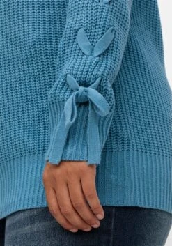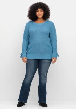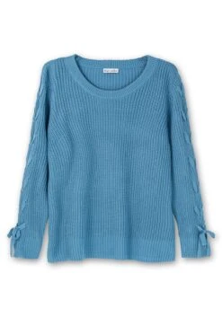 Pullover im Halbpatent-Strick von sheego by Joe Browns. In die Ärmel eingeflochtene Bänder geben dem Look eine verspielte Note. Ansonsten zeigt sich der Pullover mit klassischem Rundhalsausschnitt. Rippbündchen an allen Abschlüssen dienen als gepflegtes Finish.