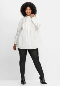 Schmale Stretchhose aus leicht schimmerndem Material von sheego by Joe Browns. Die Beschichtung des Materials gibt der Hose glamourösen Charme – und ist eine tolle Alternative zum festlichen Kleid. Ausgestattet ist die Hose mit Festbund, Gürtelschlaufen, Knopf- und Reißverschluss. Zu den beiden Gesäßtaschen hinten kommen zwei Ziertaschen mit Reißverschluss, die sich kontraststark absetzen. Durch den Einsatz am Knie wird die Linie modisch aufgebrochen. Figurschmeichelnde Teilungsnähte vorn strecken optisch.