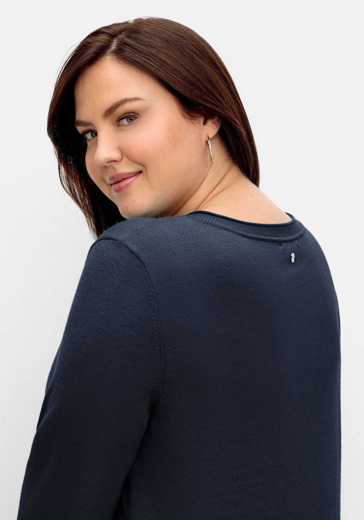Der Pullover ist gerade und figurumspielend geschnitten und endet mit einem geraden Saum.