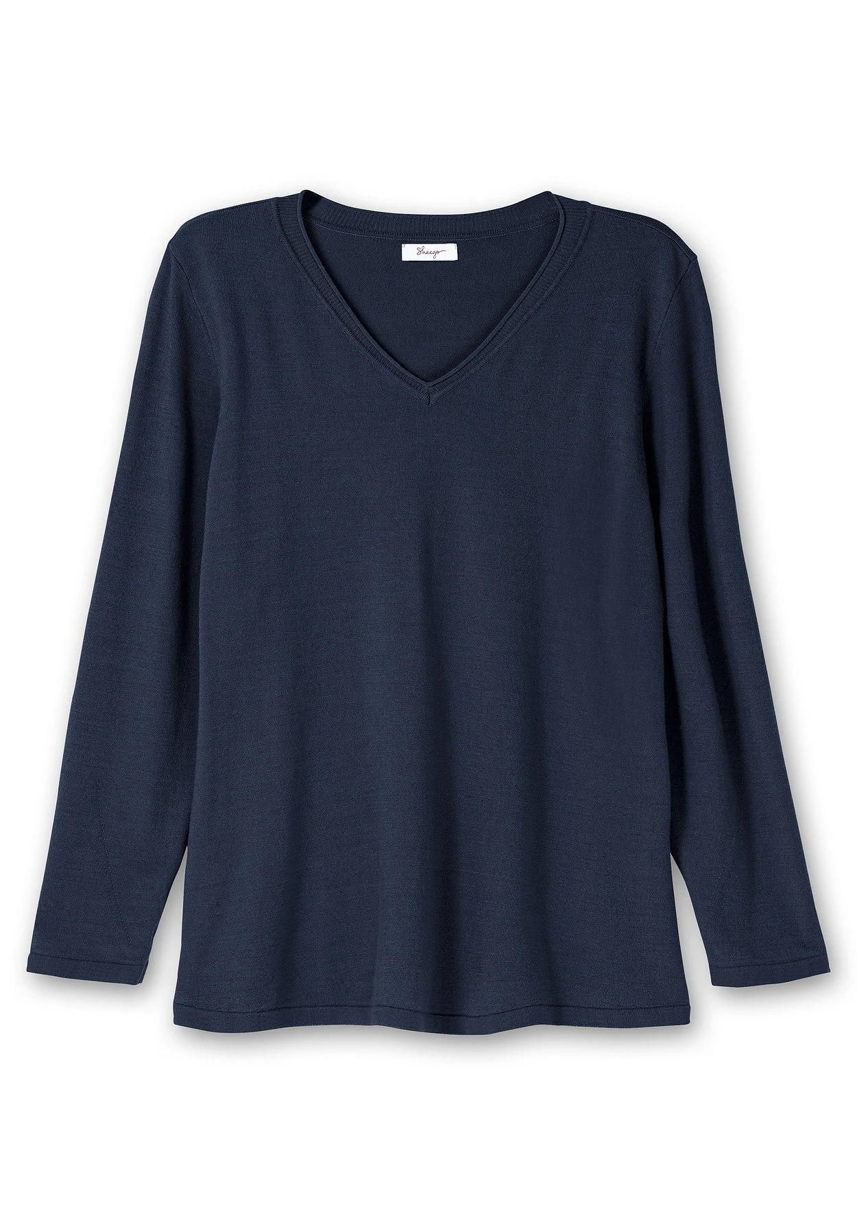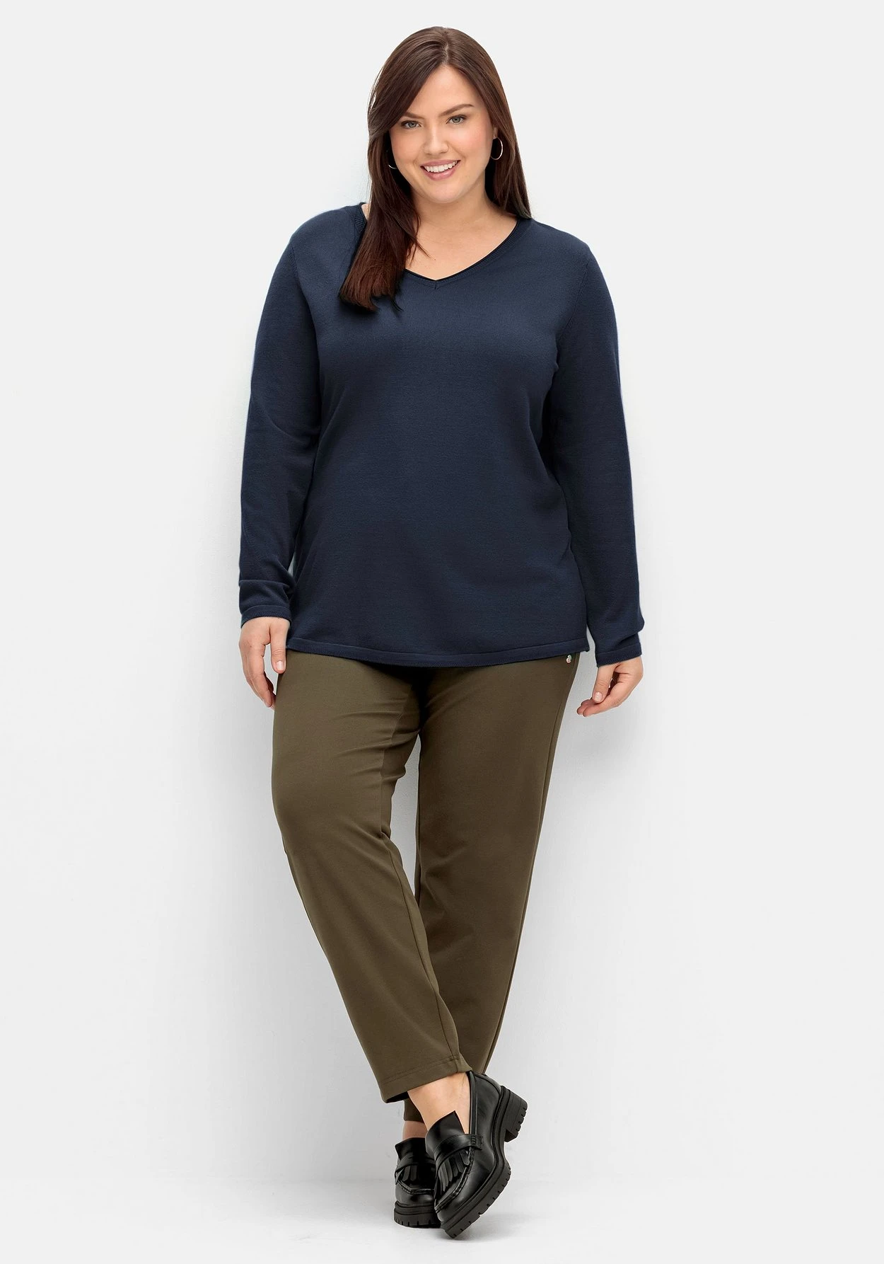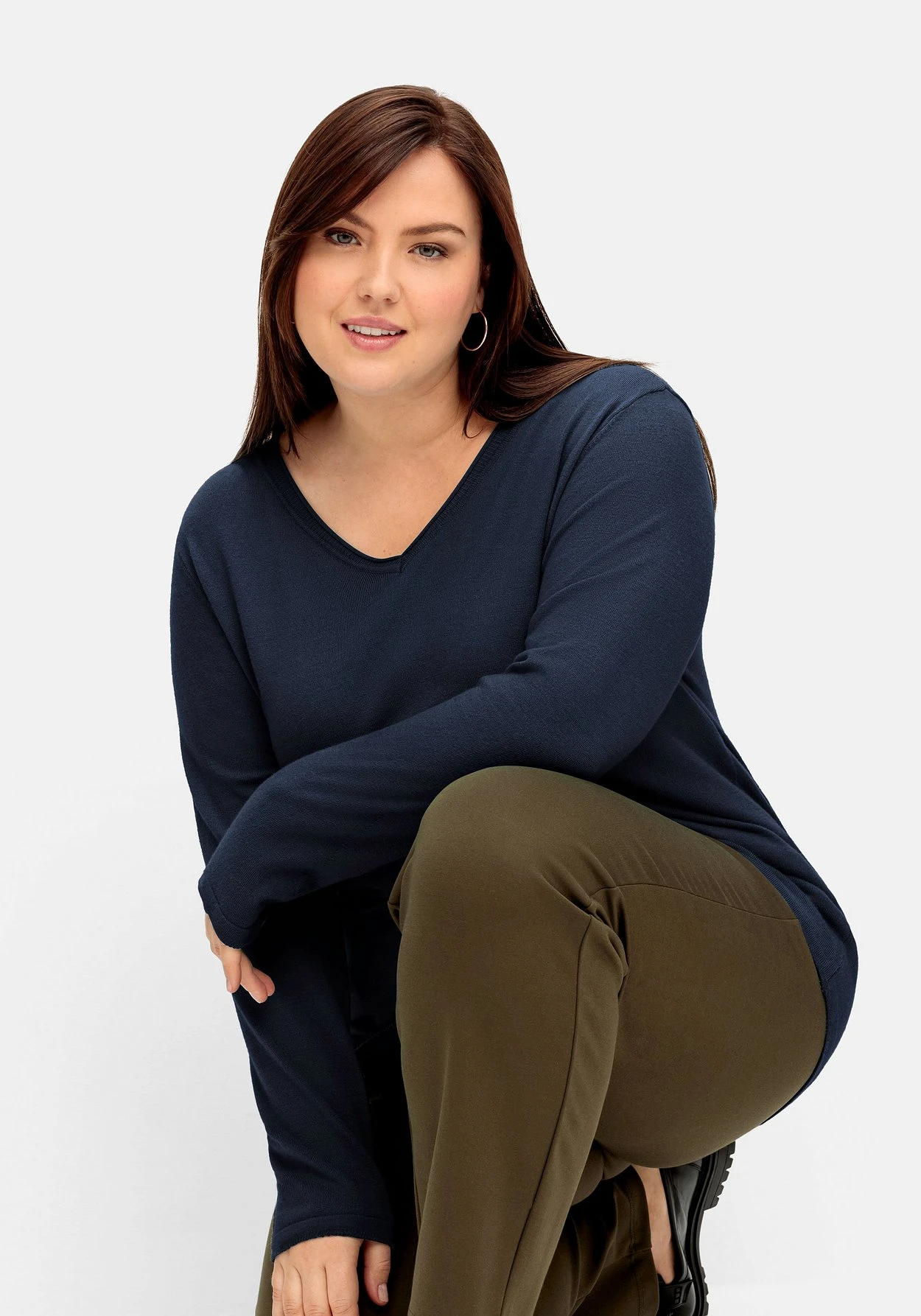 Pullover in flauschig weicher Qualität. Eine Rollkante betont den V-Ausschnitt, kontrastfarbene Nähte an Saum- und Ärmelabschluss setzen sportive Akzente. Ein unkomplizierter Style, der dich durch viele Saisons begleitet!