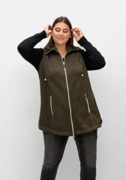 Die Weste ist in leichter A-Linie geschnitten und reicht bis über den Po.