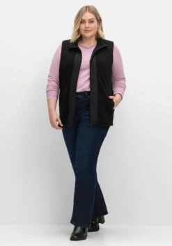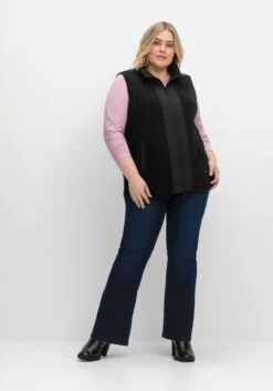 Weste aus weichem Fleece. Die ärmellose Form mit hoch schließendem Stehkragen macht sie zum idealen Begleiter durch die Übergangszeit. Für mehr Bequemlichkeit kann der 2-Wege-Reißverschluss von oben und unten geöffnet werden. Der breite Besatz setzt modische Akzente und streckt gleichzeitig die Silhouette, auch die Leistentaschen werden so dekorativ betont. Geschickt gesetzte Teilungsnähte ergänzen den figurschmeichelnden Effekt.