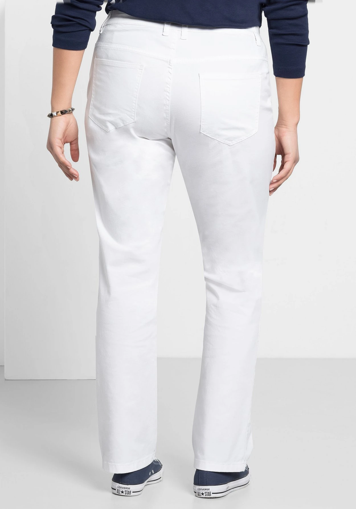 Die gerade Baumwoll-Stretch-Hose ist ein echtes Basic. Sie besitzt zwei Eingrifftaschen, zwei Gesäßtaschen und Gürtelschlaufen. Das schlichte Design macht sie vielseitig einsetzbar – sollte in keinem Kleiderschrank fehlen.