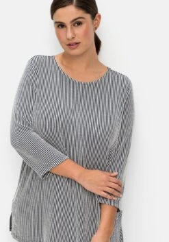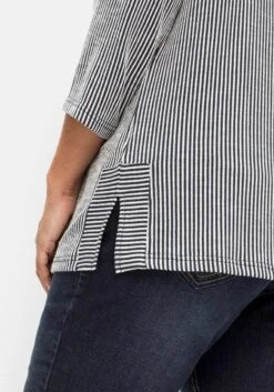 Shirt mit garngefärbten Streifen. Die feinen Längsstreifen bringen Bewegung in den Look, die breite Blende an den seitlichen Schlitzen setzt dazu einen effektvollen Kontrast. Die Ärmel enden in lässiger 3/4-Länge.