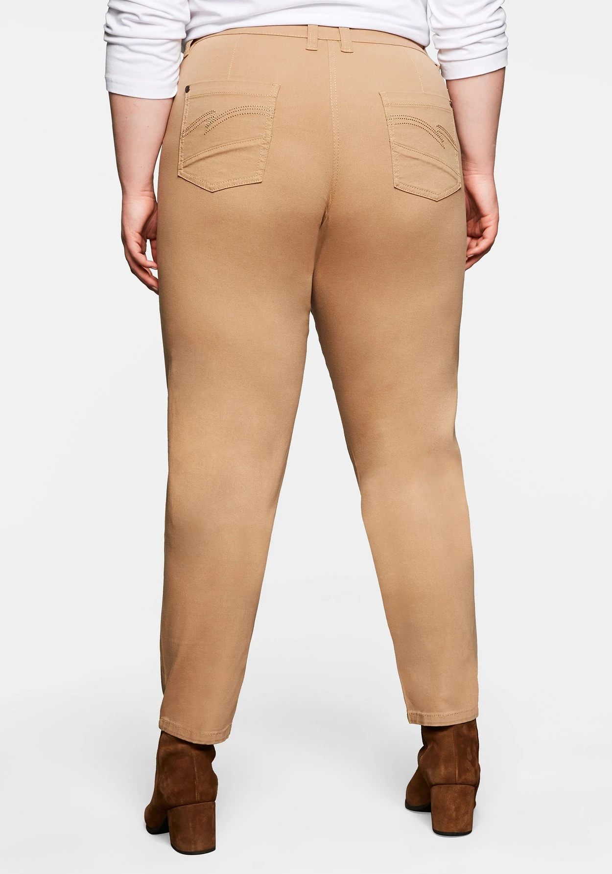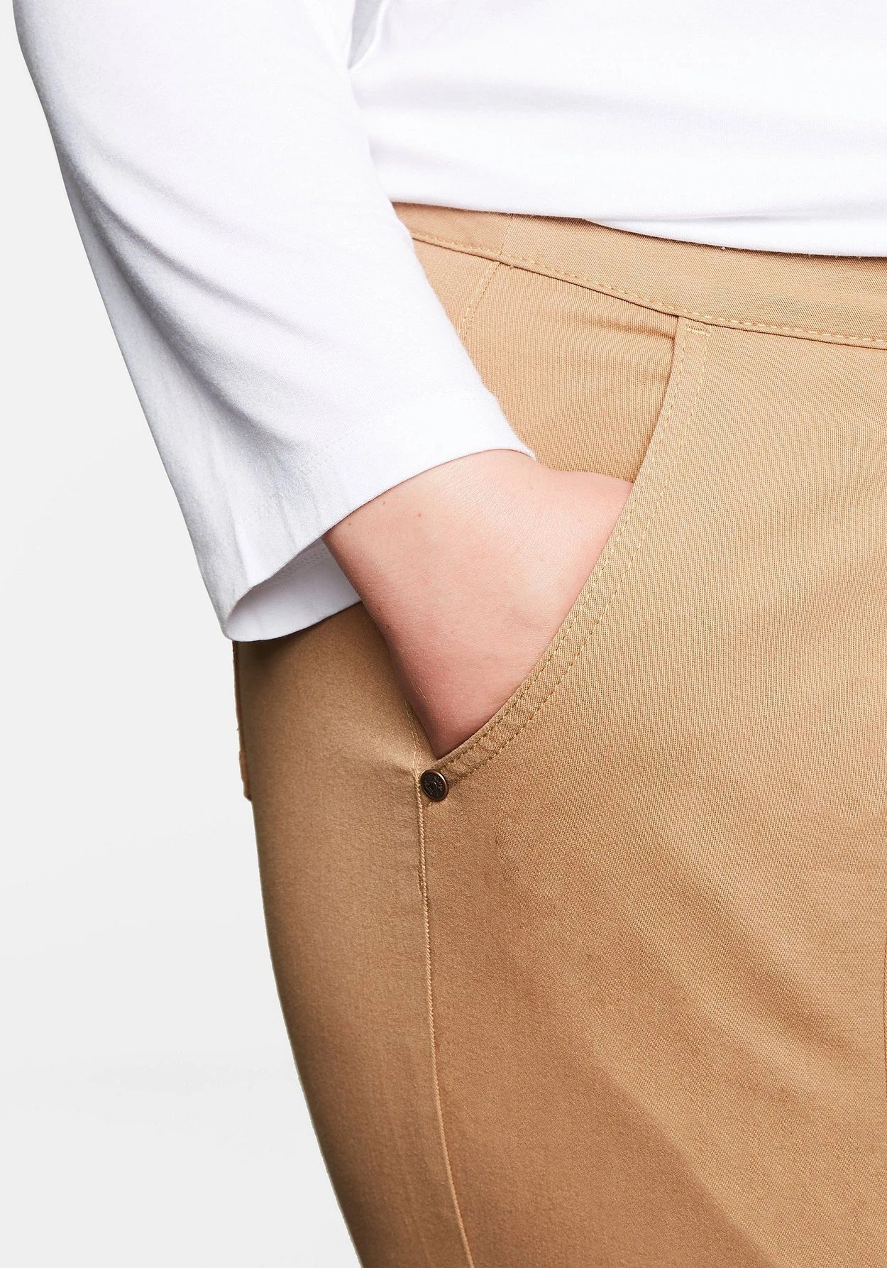 An den Oberschenkeln schön weit und zum Knöchel hin schmal zulaufend: Der Schnitt OLIVIA schmeichelt auch kräftigeren Oberschenkeln.