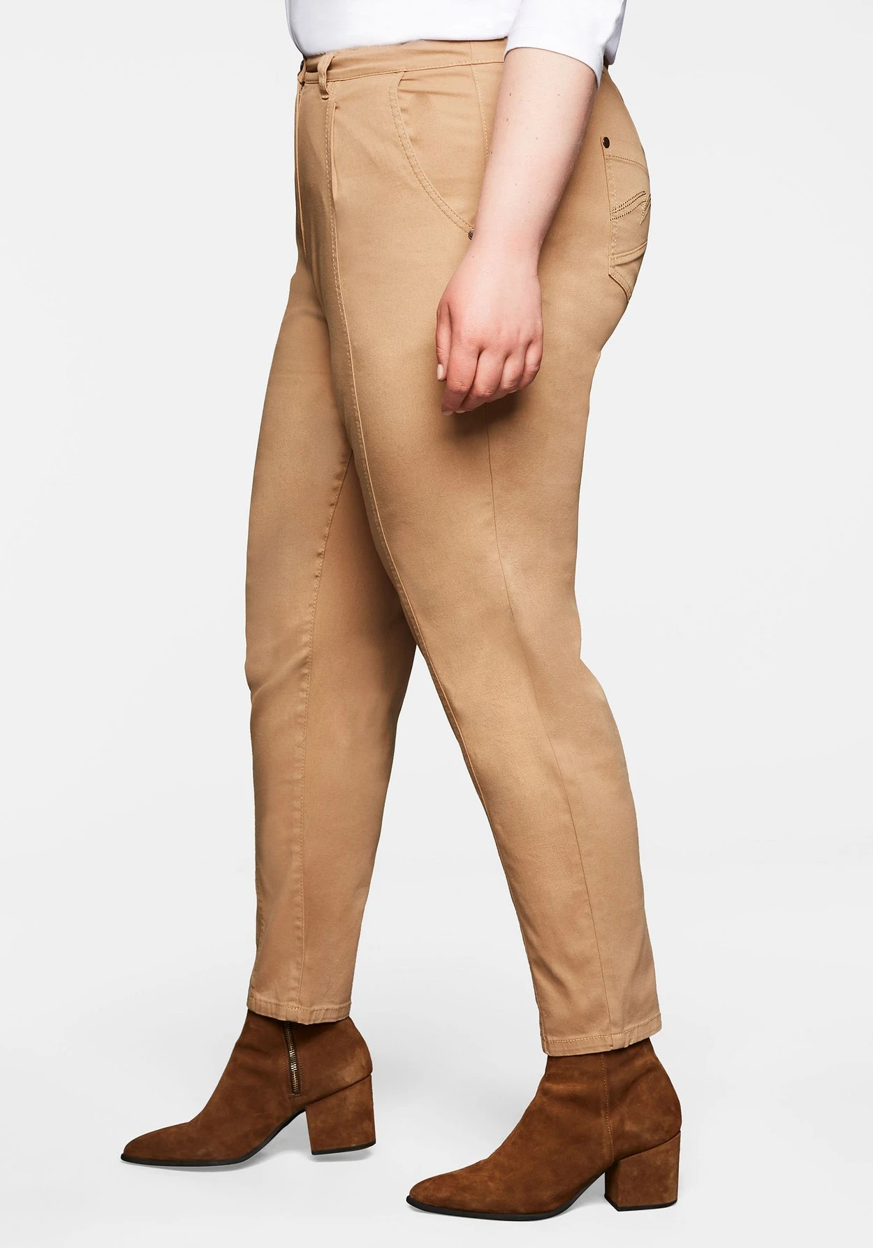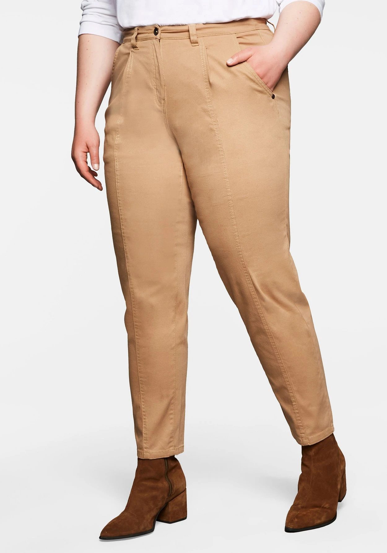 Hose in der Passform OLIVIA. Der ballonförmige Schnitt sorgt zusammen mit der High-Waist-Form für eine sehr moderne Silhouette. Bundfalten sowie eine streckende Teilungsnaht vorn sind weitere dekorative Details. Dazu kommen die beiden seitliche Eingrifftaschen vorn und zwei aufgesetzte Taschen hinten. Der Formbund mit Gürtelschlaufen ergänzt den Style.