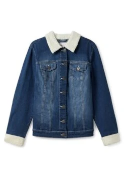 Jeansjacke mit Fellimitat. Der klassische Fit zeigt sich mit Umlegekragen und durchgehender Knopfleiste, die Brusttaschen sind mit Patten und Knopf gearbeitet. Das Fellimitat an Kragen und Ärmelabschluss gibt dem Look einen kuscheligen Twist. Durch die individuelle Waschung erhält die Jacke Lässigkeit, hinten sorgt die Passe für einen guten Sitz.