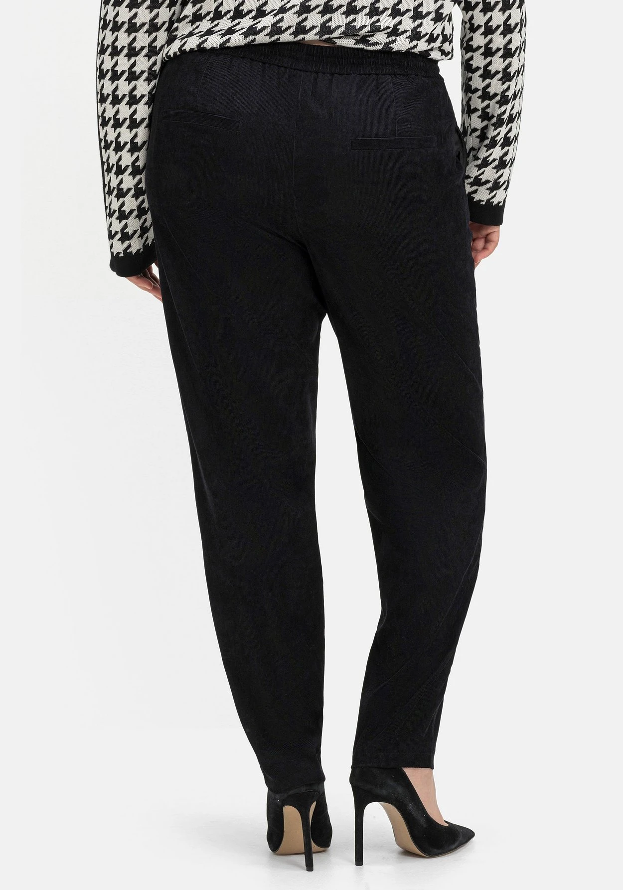 Die trendige Cordoptik trägt sich durch den Stretchanteil angenehm elastisch und pflegeleicht.