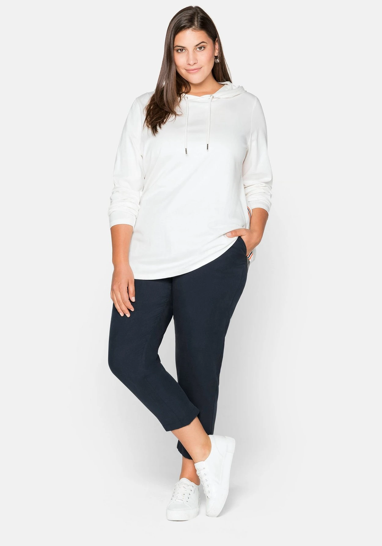 Die Hose besteht aus leicht strukturierter Qualität aus TENCEL™ Lyocell. TENCEL™ Lyocell. ist eine glatte, seidige Faser, die zum größten Teil aus Eukalyptusholz gewonnen wird – einer Pflanze, die schnell wächst und daher ohne künstliche Bewässerung oder Pestizid-Einsatz auskommt. sheego cares!