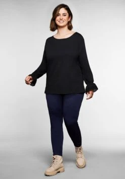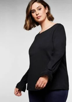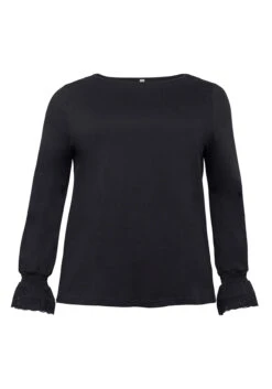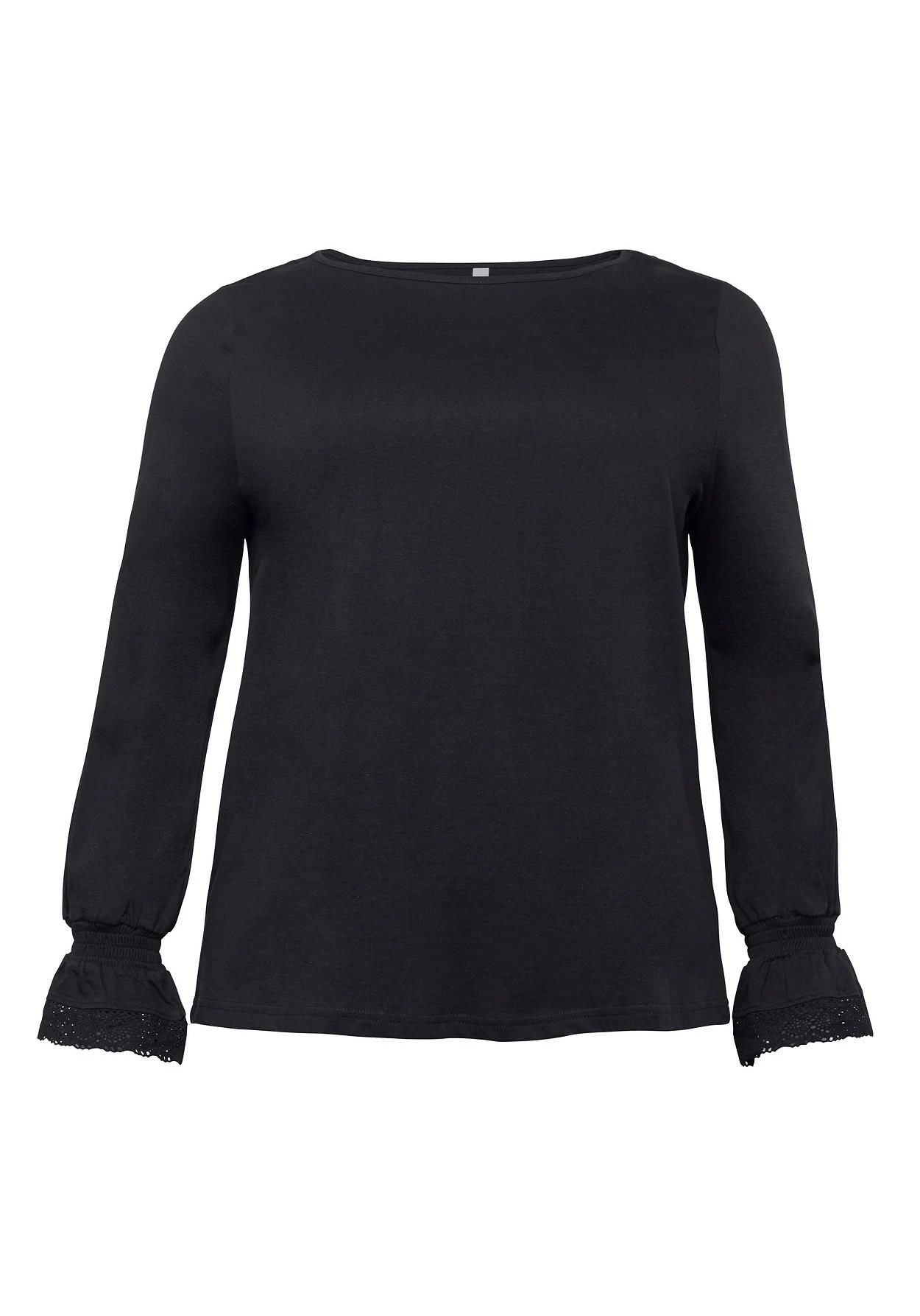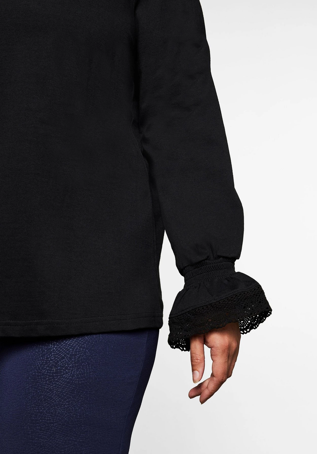 Langarmshirt mit Rundhalsausschnitt. Dieses feminine Oberteil überzeugt durch Rüschen und Spitze am Ärmelsaum.