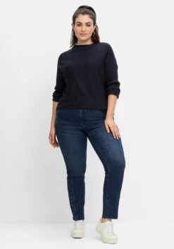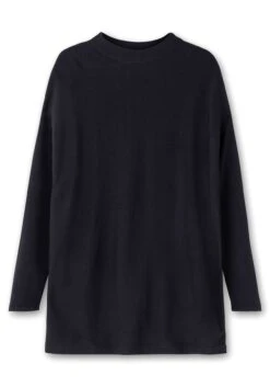 Pullover mit kurzem Stehkragen. Kuschelig weich kommt dieser Strickstyle und erhält seine legere Optik durch die weit überschnittenen Ärmel. Dabei setzen sich die Ärmel durch die Rippstrick-Optik modisch ab.