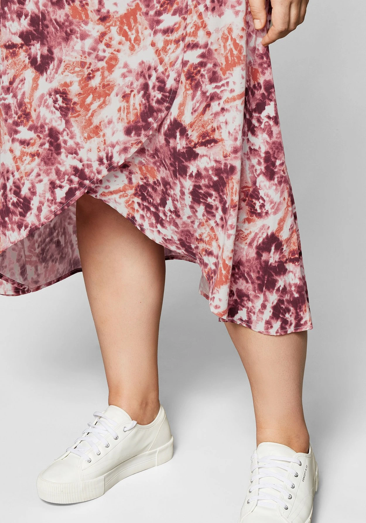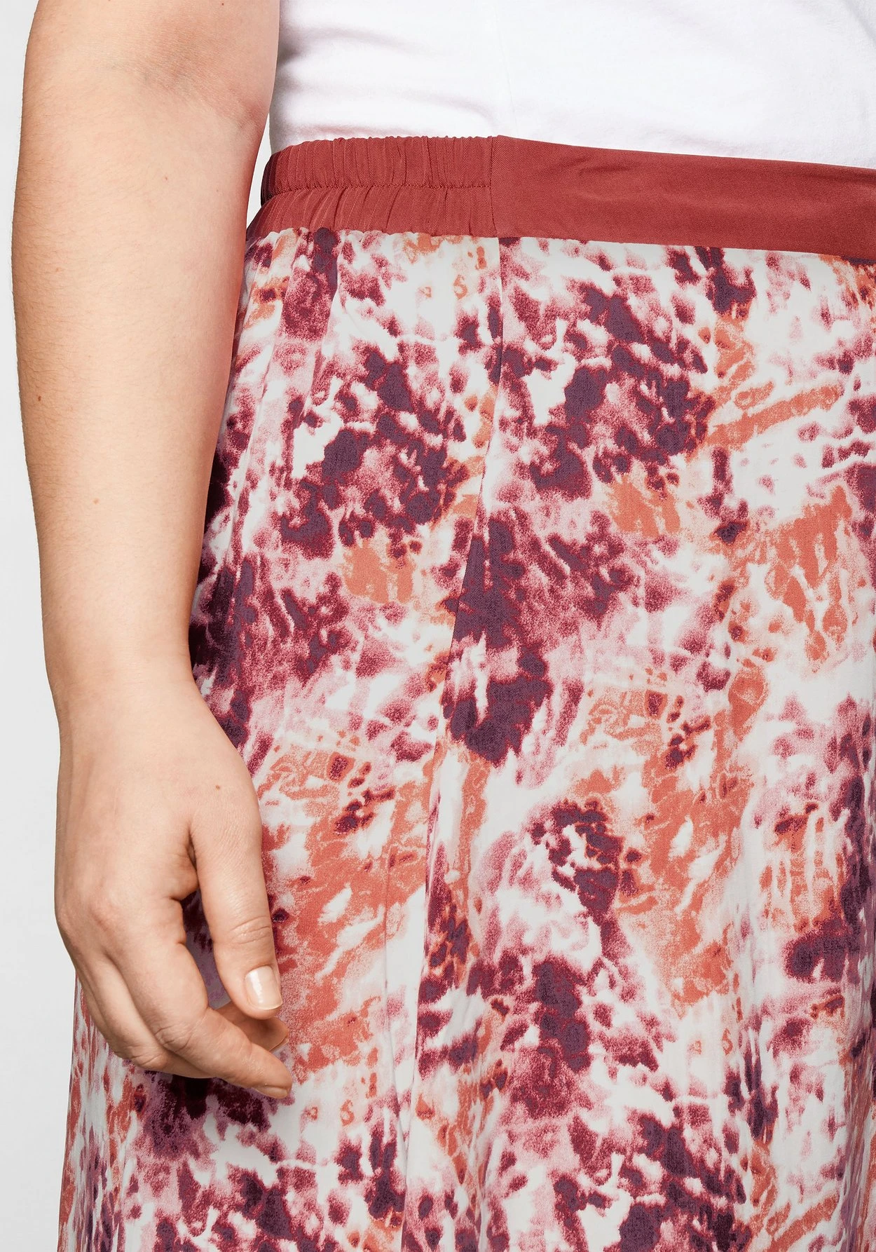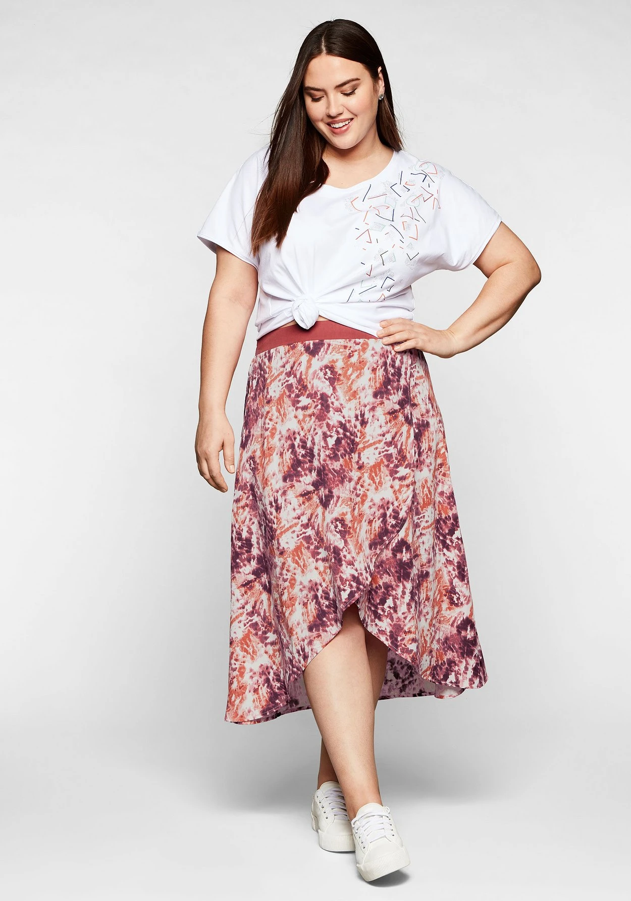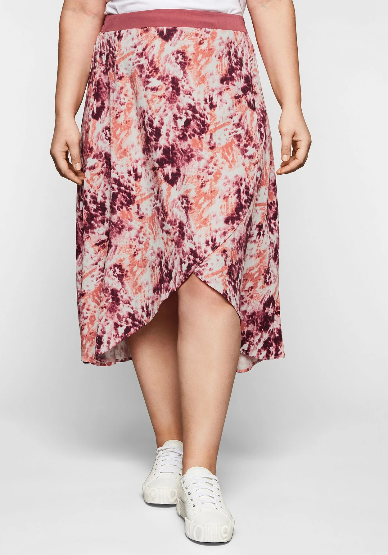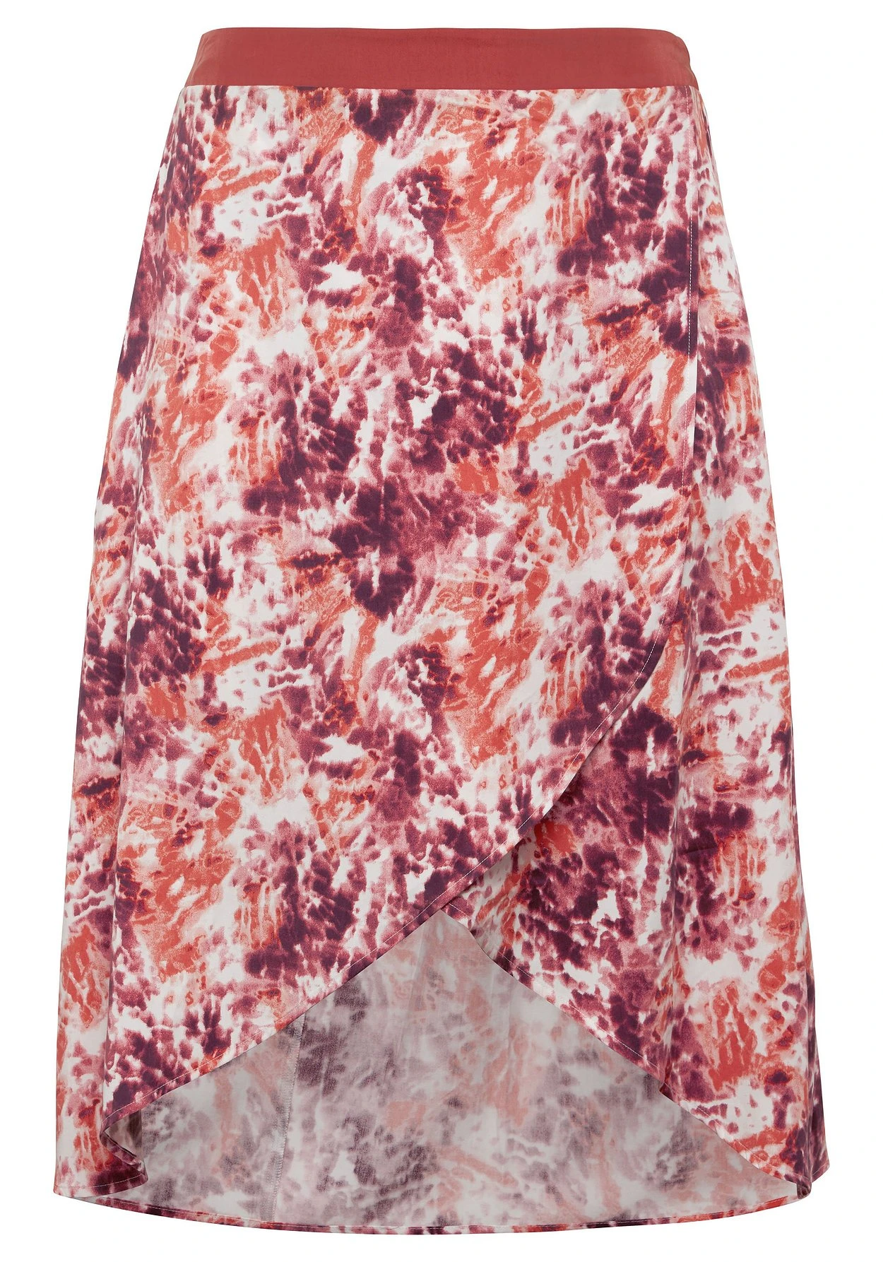 Rock mit farbenfrohem Alloverdruck im Batik-Look. Für feminine Leichtigkeit sorgt der raffinierte Schnitt in Wickeloptik, der hinten länger als vorn ist. Ein Gummizug hinten im Bund sorgt für ein bequemes Tragegefühl und den optimalen Sitz.