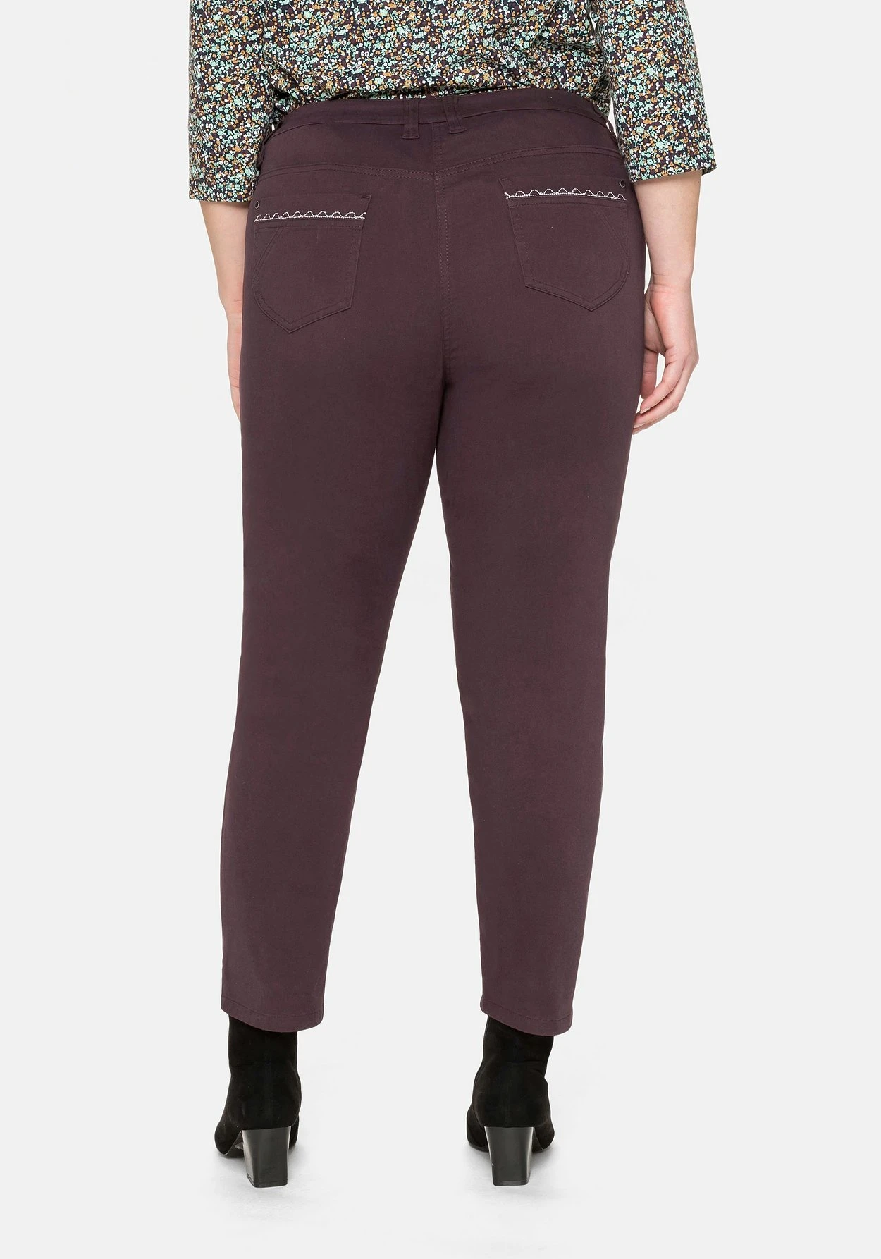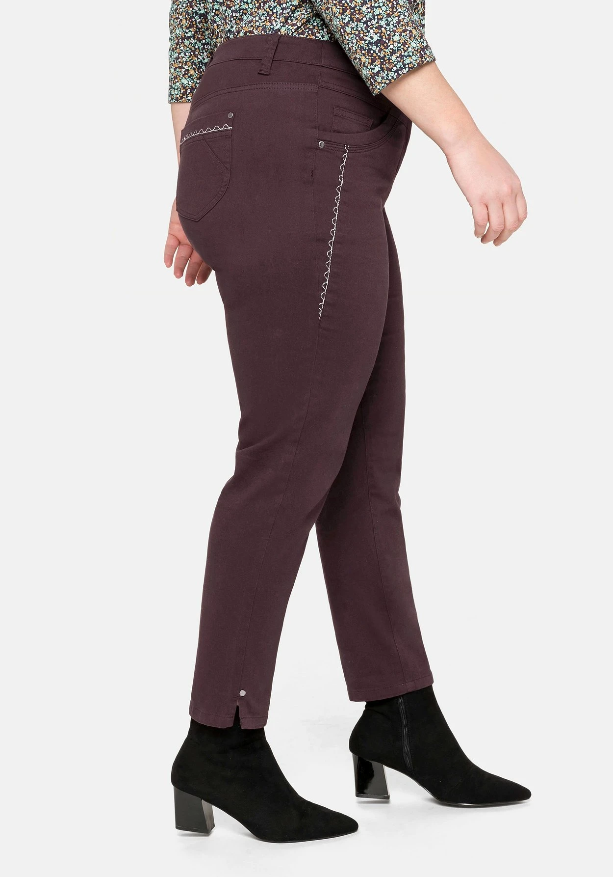 Schmale Ankle-Hose aus elastischer Twill-Qualität. Als dezente Eyecatcher dienen die Stickereien in Kontrastfarbe an den Taschen, der Saum wird durch einen kurzen Schlitz und kleine Nieten betont. Der Bund ist mit Gürtelschlaufen gearbeitet, die 5-Pocket-Form rundet den klassischen Auftritt ab.
