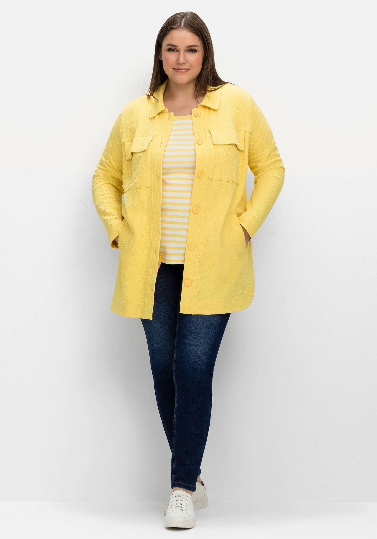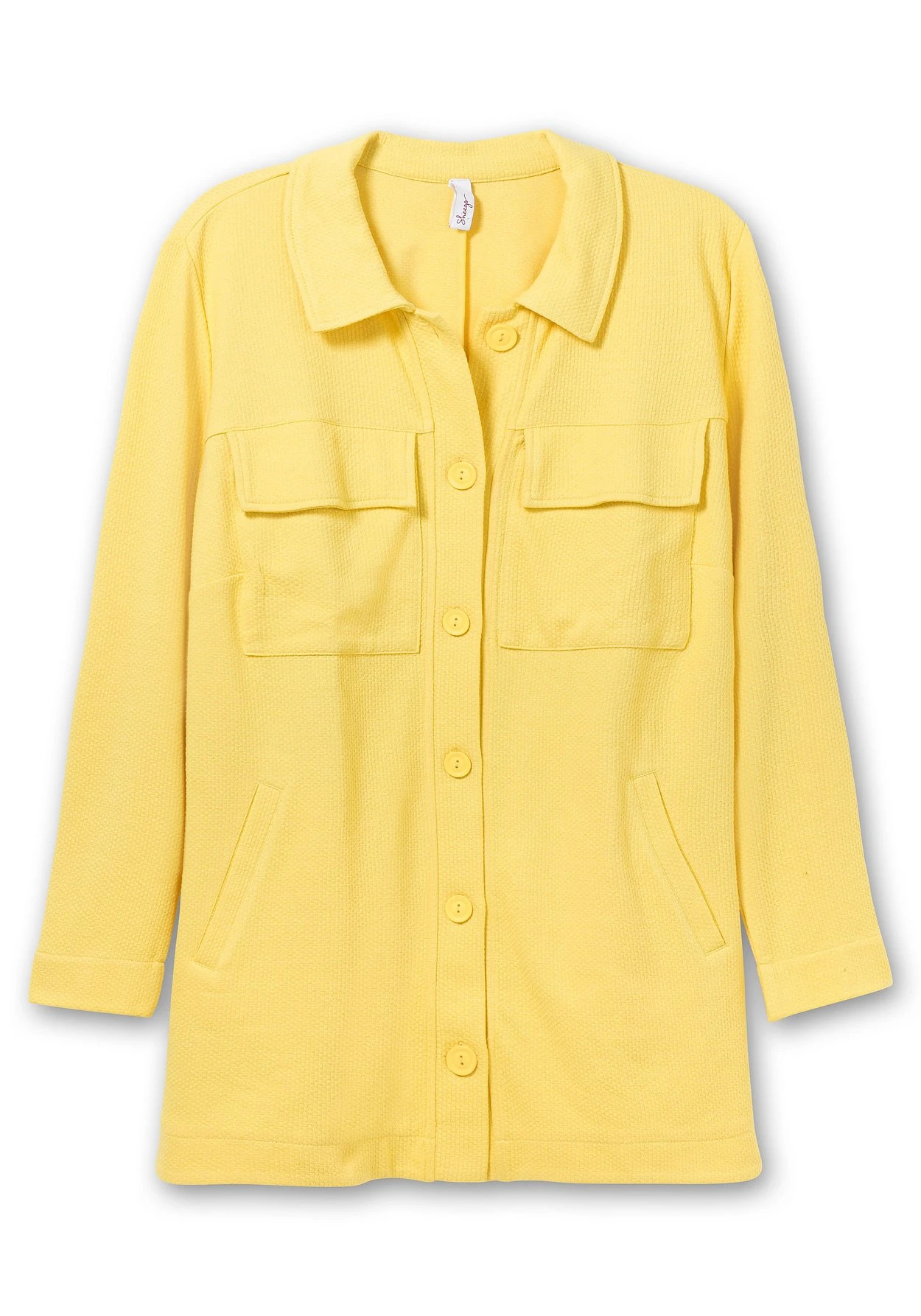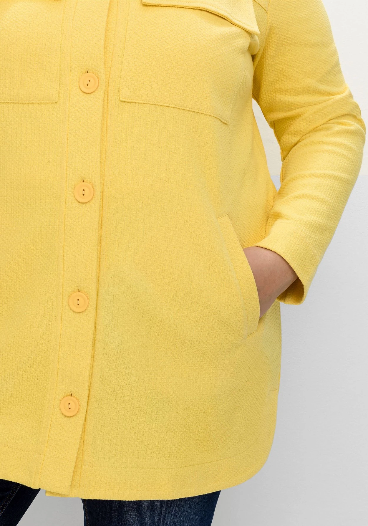 Hemdjacke aus strukturiertem Sweat. Das modische Shacket zeigt sich mit Hemdkragen und durchgehender Knopfleiste. Die beiden Pattentaschen auf Brusthöhe unterstreichen den sportiven Stil, praktisch sind die seitlichen Leistentaschen. Durch den gerundeten Saum mit Seitenschlitzen erhält die Jacke einen lässigen Fall.