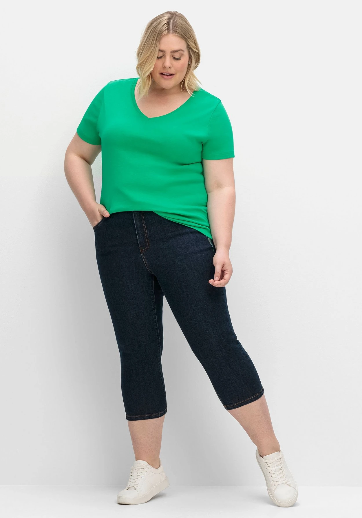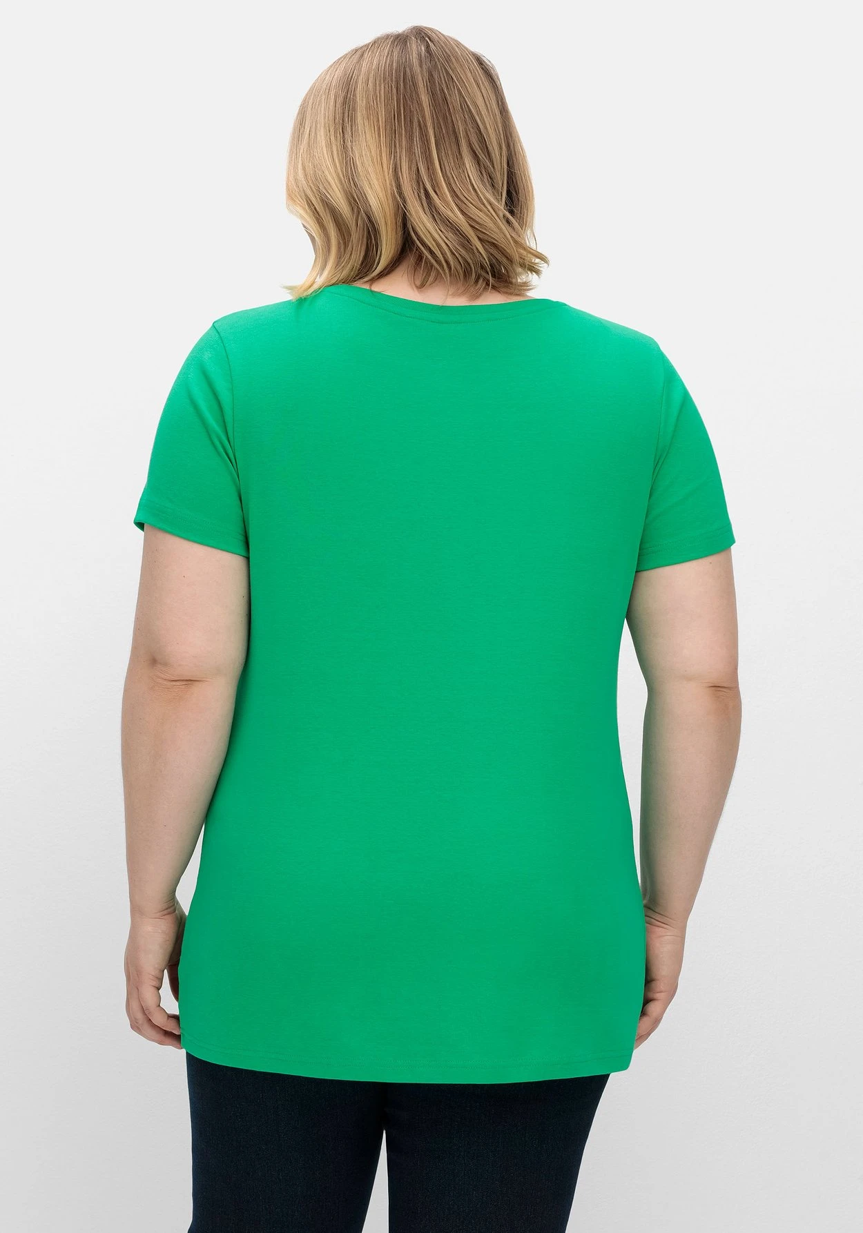 Die Shirtware aus reiner Baumwolle ist besonders hautfreundlich und durch die fein gerippte Qualität leicht dehnbar. Durch deinen Kauf unterstützt du außerdem die Arbeit von „Cotton made in Africa“. Die Initiative leistet Hilfe zur Selbsthilfe durch Handel und will so die Lebensbedingungen afrikanischer Kleinbauern nachhaltig verbessern. sheego cares!