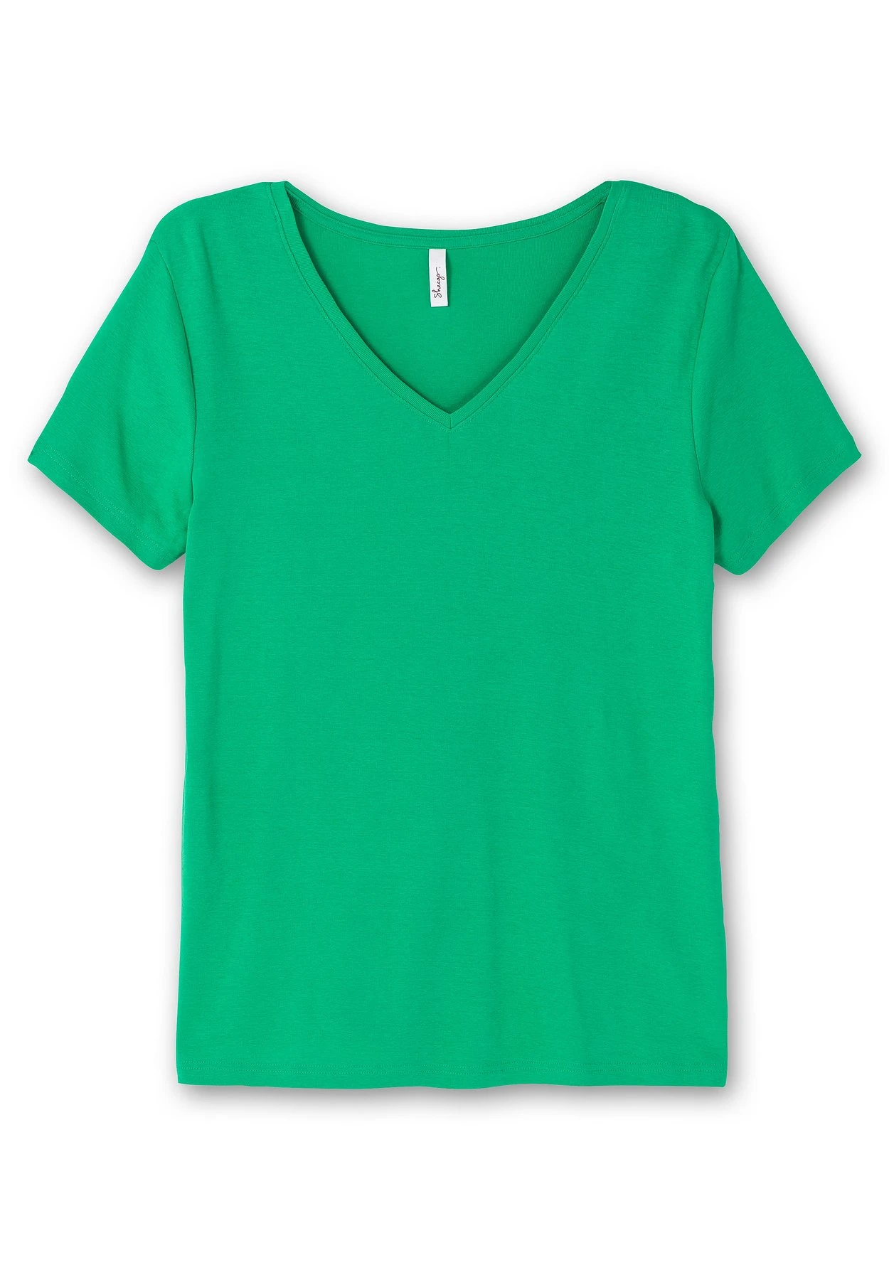 T-Shirt in feiner Rippstruktur, mit V-Ausschnitt. Der Basic-Liebling ist ideal für angesagte Layering-Looks, macht aber auch solo eine gute Figur.
