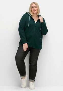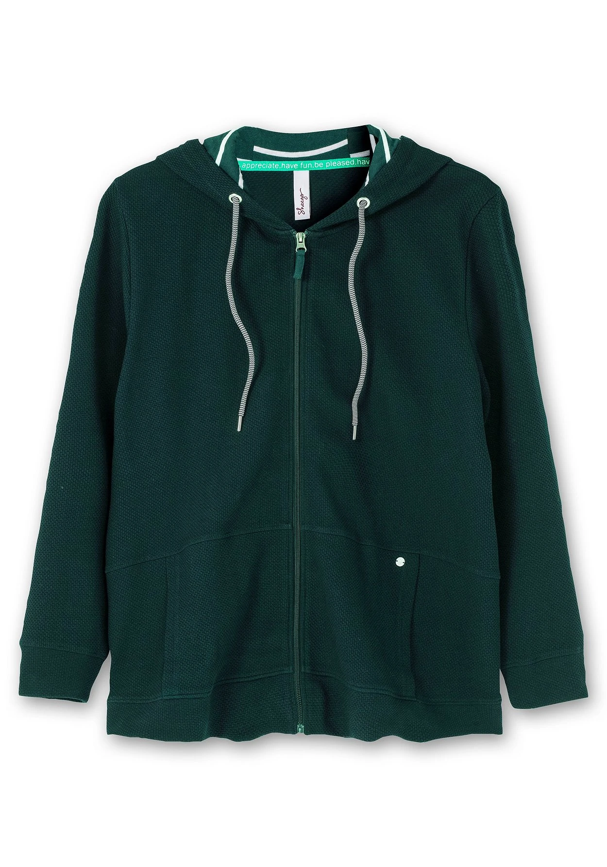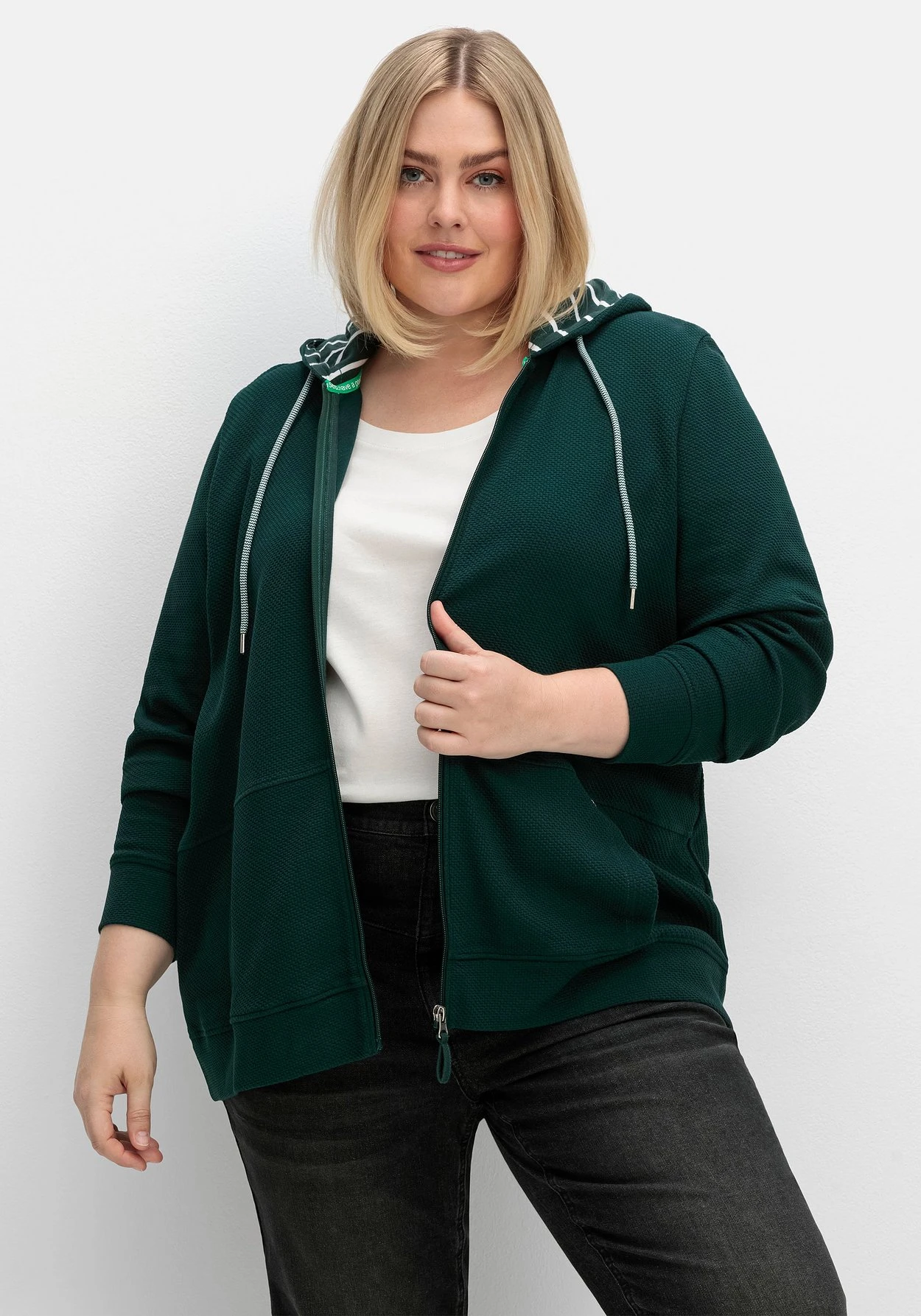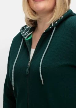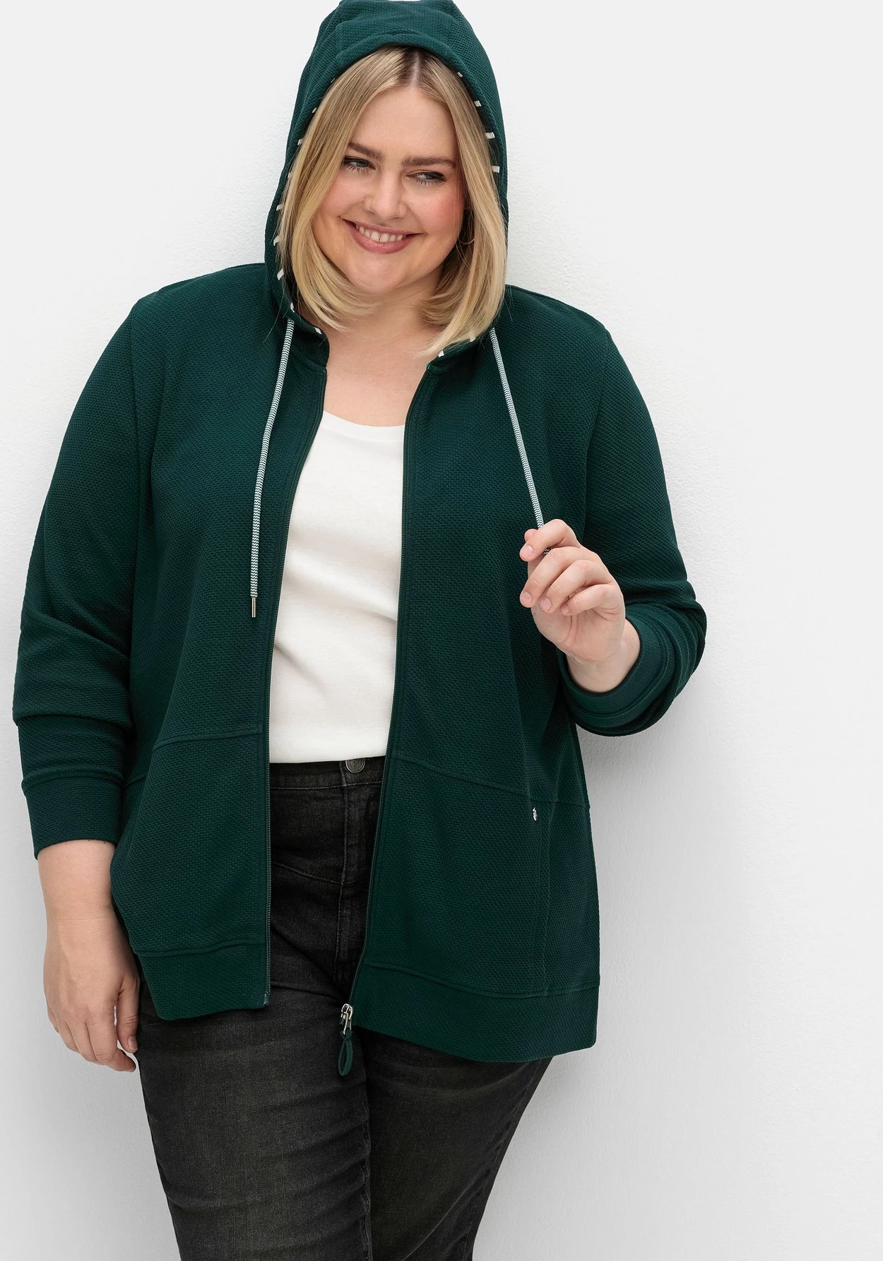 Sweatjacke in Waffelpiqué-Struktur. Die Kapuze ist mit einem kontrastfarbenen Bindebändchen gearbeitet, das gestreifte Innenfutter sorgt für maritimes Flair. Praktisch sind die großen Eingrifftaschen, glatte Bündchen an Ärmelabschluss und Saum dienen als legeres Finish.