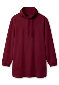 Sweatshirt in A-Linie. Der hohe, weite Kragen erhält durch den Tunnelzug mit Bindeband seine sportive Optik. Die langen Ärmel enden mit Rippbündchen, praktisches Detail sind die beiden Leistentaschen. Der gerundete Saum gibt der A-Linie einen entspannten Abschluss.