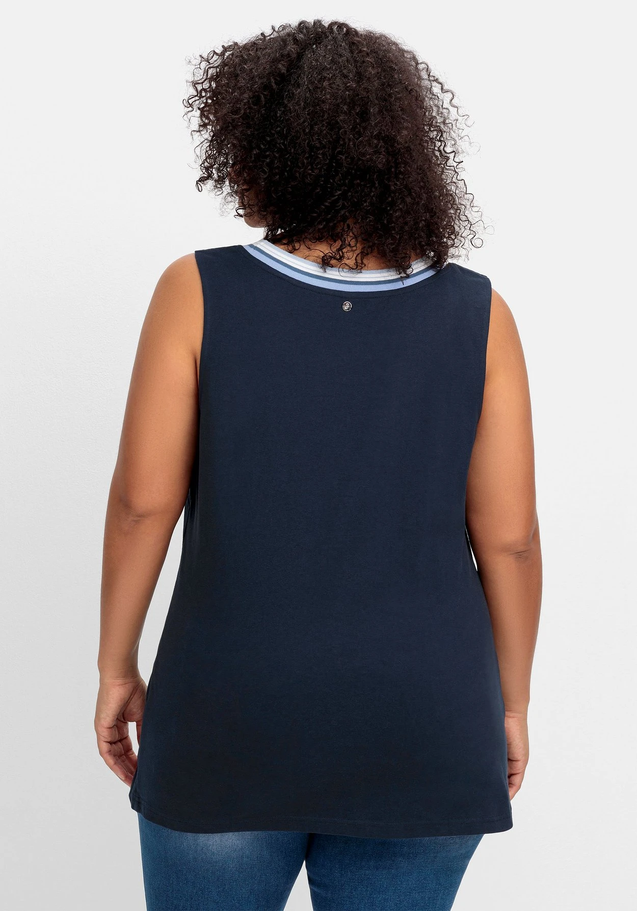 Das Top ist leicht tailliert geschnitten und endet mit einem geraden Saum.