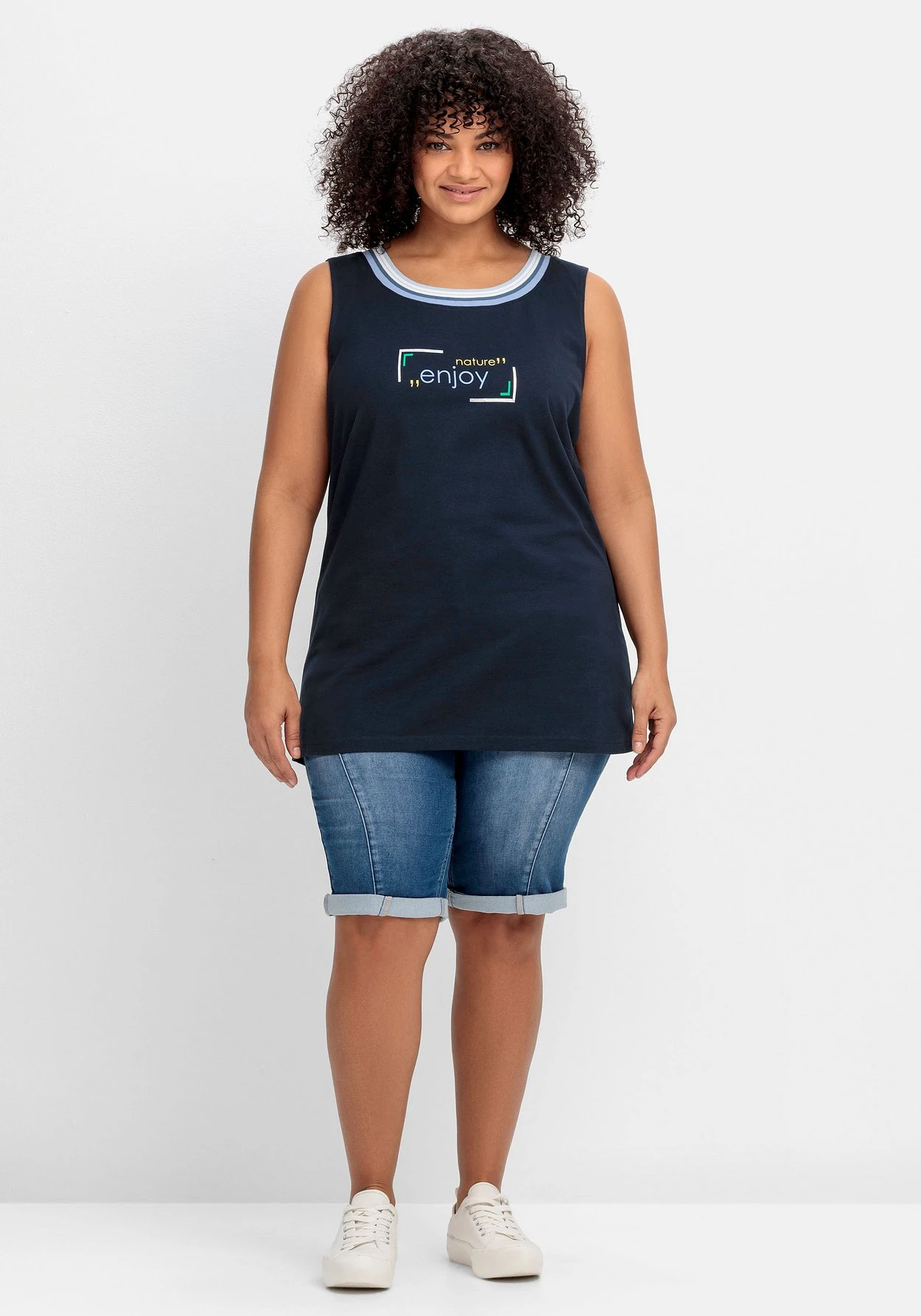 Die Jerseyqualität besteht aus reiner Baumwolle. Mit deinem Kauf unterstützt du die Arbeit von „Cotton made in Africa“. Die Initiative leistet Hilfe zur Selbsthilfe durch Handel und will so die Lebensbedingungen afrikanischer Kleinbauern verbessern. sheego cares!