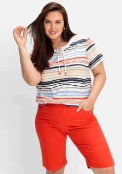 Bermudas in Twill-Qualität. Dank des Gummibunds trägt sich die kurze Hose sehr bequem, fünf Taschen ergänzen den unkomplizierten Look. Feminines Detail ist die Stickerei hinten auf der Po-Tasche.