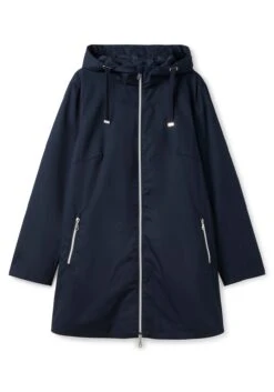 Übergangsjacke in A-Linie. Die mit einem Bindeband ausgestattete Kapuze sorgt für eine junge, sportive Optik. Praktisch ist der 2-Wege-Reißverschluss, auch die Taschen sind mit einem Zipper ausgestattet. Durch den innenliegenden Tunnelzug lässt sich der Saum individuell in der Weite verstellen, eine Teilungsnaht hinten streckt die Silhouette optisch.
