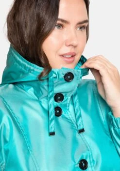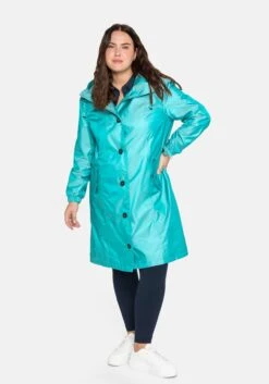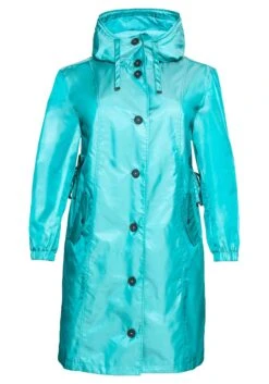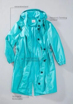 Übergangsmantel in schimmernder Two-Tone-Optik. Mit Tunnelzug und Kontrast-Bindeband schützt die Kapuze vor Wind und Regen. Als Verschluss dient die durchgehende Knopfleiste mit dekorativen Kontrastknöpfen, die Ärmel enden mit Gummibündchen. Vorn fallen die beiden Pattentasche mit Druckknopf ins Auge, besonders praktisch ist die innenliegende Reißverschlusstasche. Der Tunnelzug im Rücken ist an den Seiten verstellbar und definiert so individuell die Silhouette. Auch der Fashion-Faktor kommt nicht zu kurz: Der Mantel schimmert in raffinierter Two-Tone-Optik.