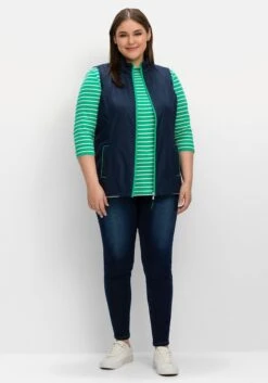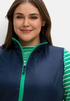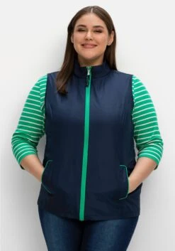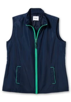 Weste mit kurzem Stehkragen. Der praktische, funktionable Look erhält durch die kontrastfarbenen Pipings am Reißverschluss sowie an den Pattentaschen ein modisches Upgrade. Geschickt gesetzte Teilungsnähte betonen die feminine Silhouette, die vorverlegte Schulternaht sowie die Passe hinten geben der Weste einen guten Sitz.