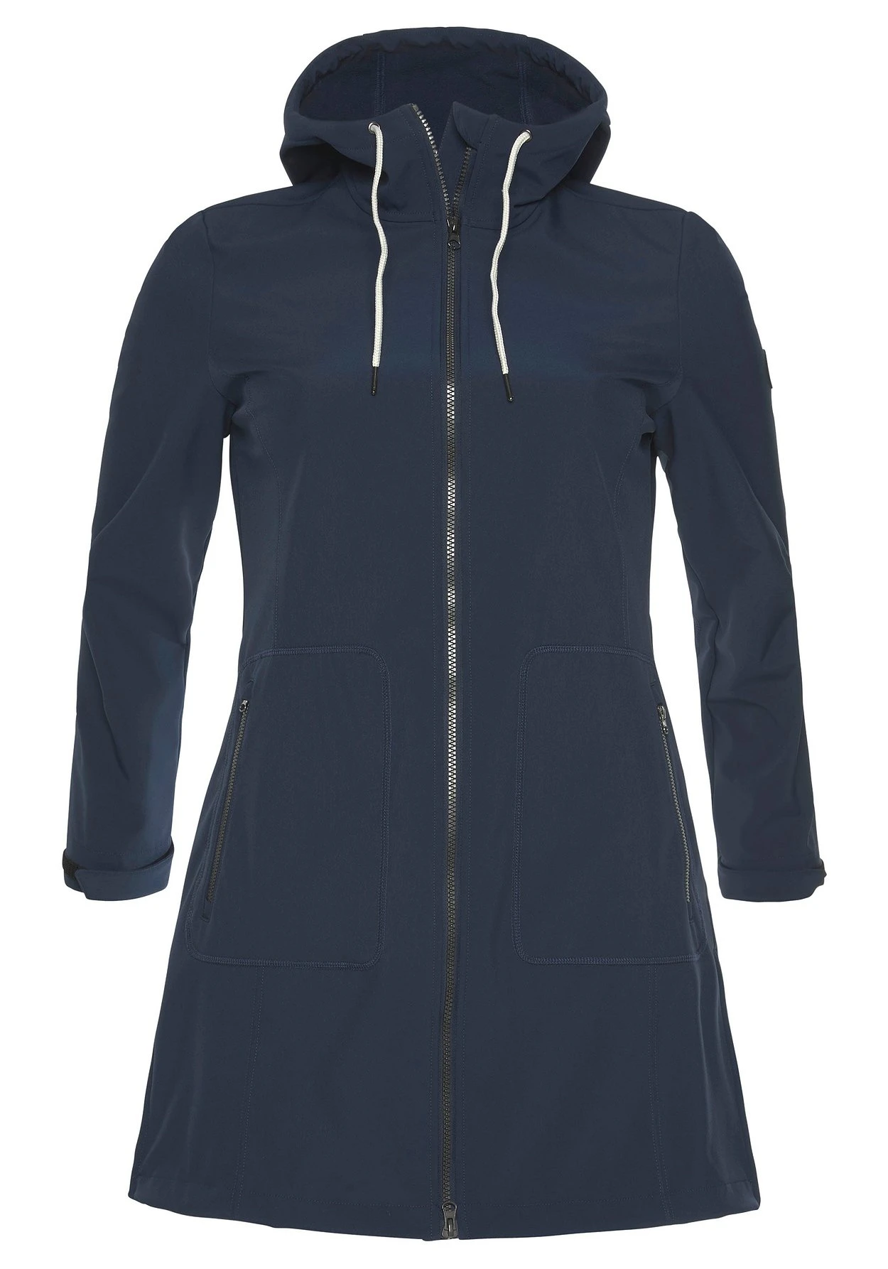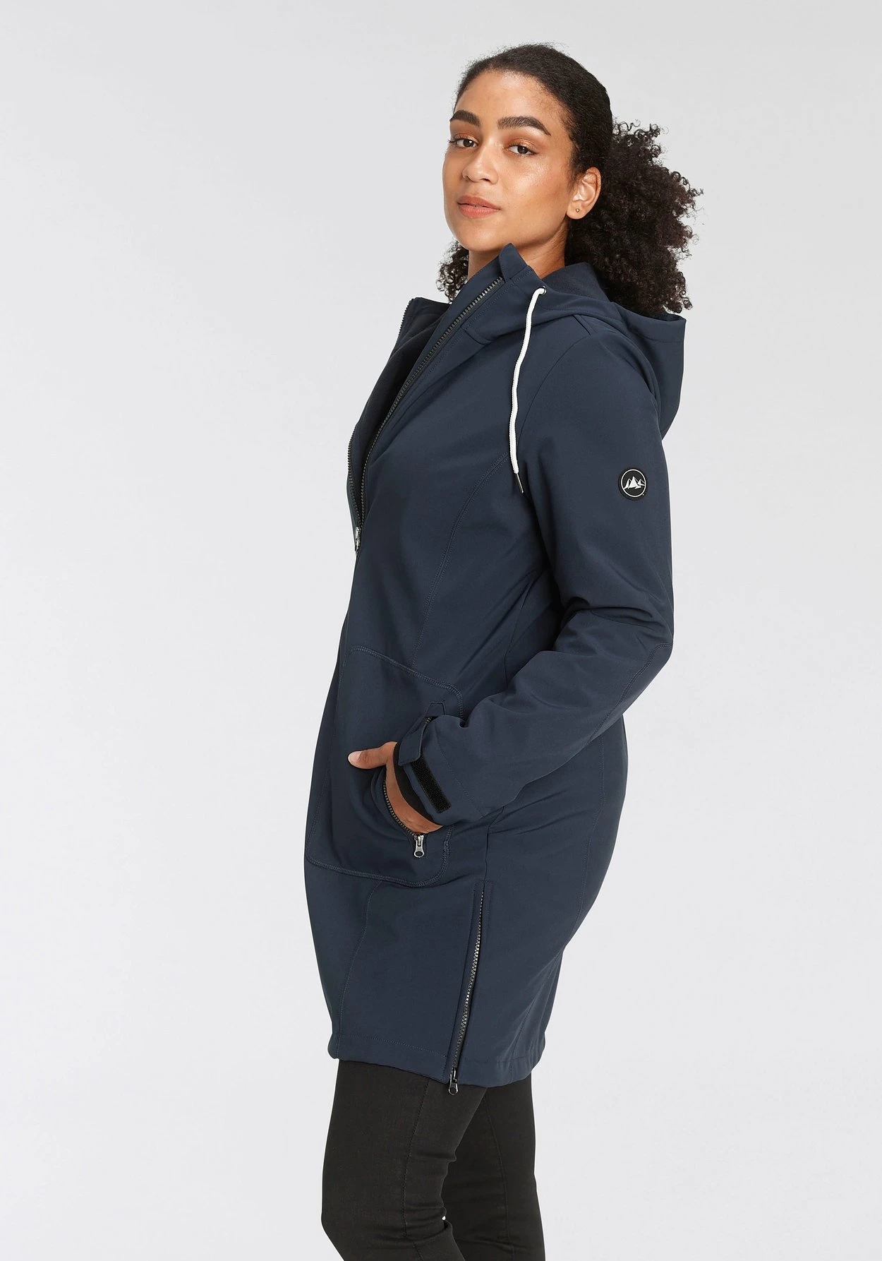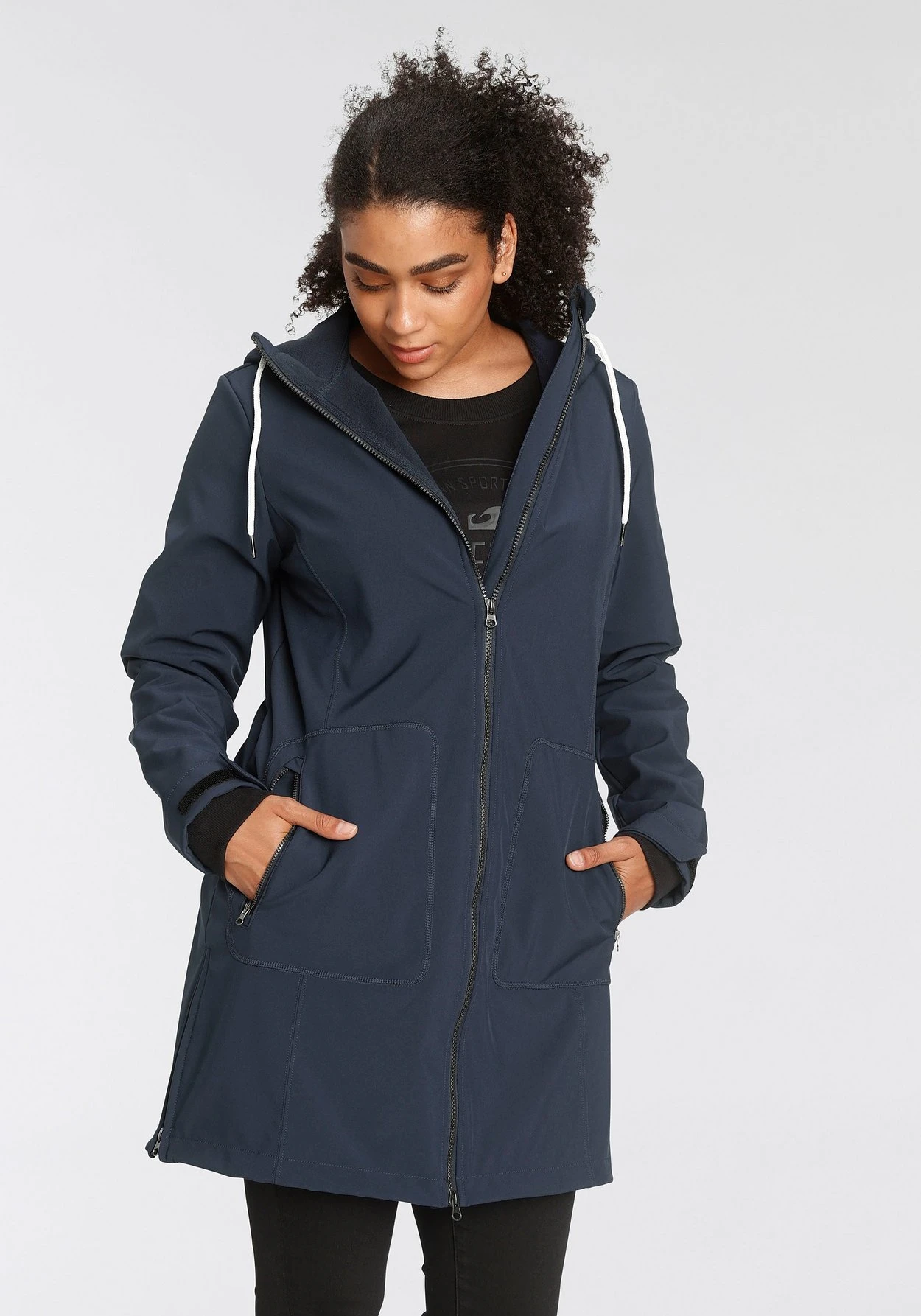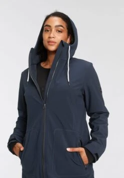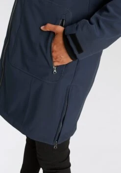 Mit Kapuze. Seitlich aufgesetzte Taschen mit Reißverschluss. Zwei-Wege-Reißverschluss. Ellbogen-Patches. Seitliche Schlitze mit Reißverschlüssen. Kleines Logo-Label auf einem Ärmel und am Reißverschluss. Atmungsaktiv, winddicht und wasserabweisend. Mit hohem Stretch-Anteil und weichem Fleecefutter.