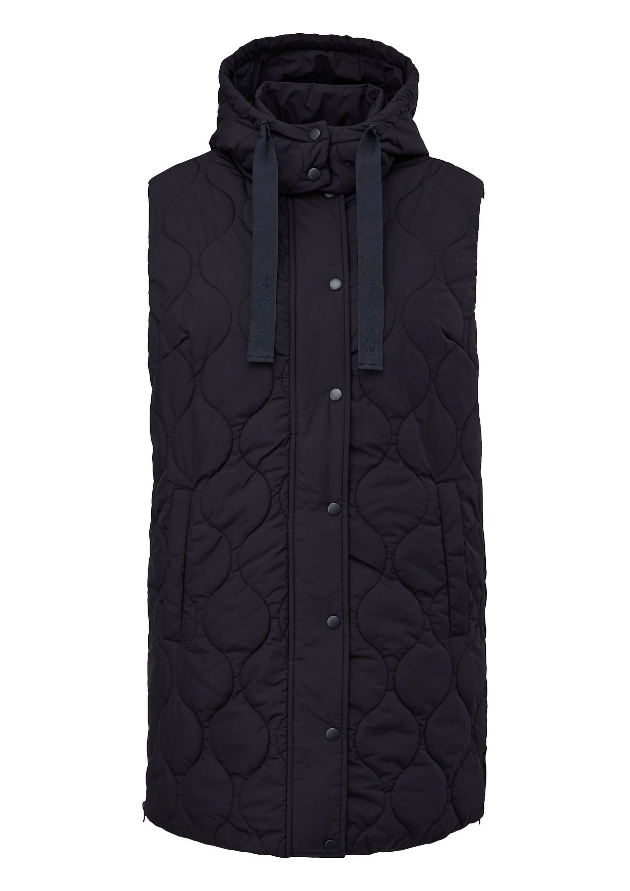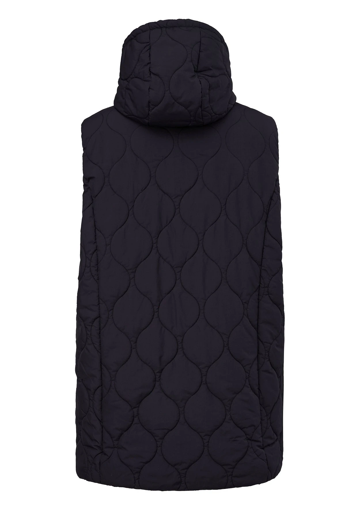 Die ärmellose Weste ist länger geschnitten, seitliche Schlitze geben Weite rund um die Hüftpartie.